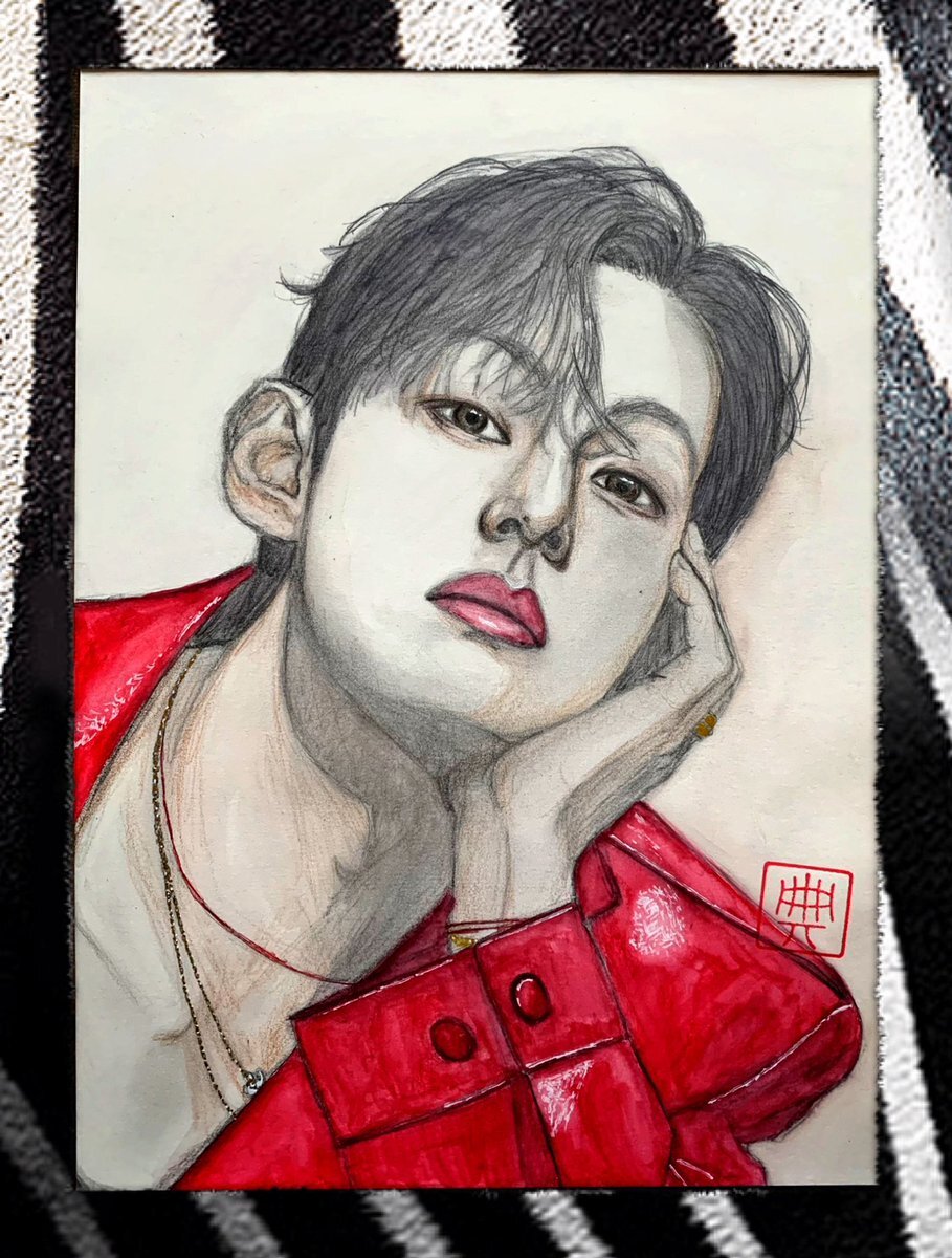 V 'TIRTIR' Cotman Water Color Paper 細目 B5 & ハガキサイズ 水彩色鉛筆&絵墨ver. 赤は水彩色鉛筆です(水筆使用) #BTS #btfanart #TIRTIR #V #Kimtaehyung #テテ #weloveyouKimtaehyung #drawingart #絵墨 #水彩色鉛筆 #カラーイラスト #fanart pic.x.com/hsarqF7IMH