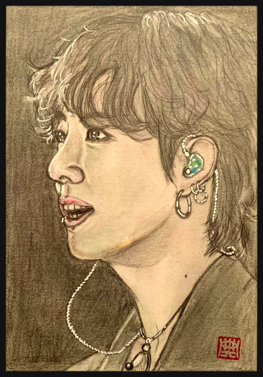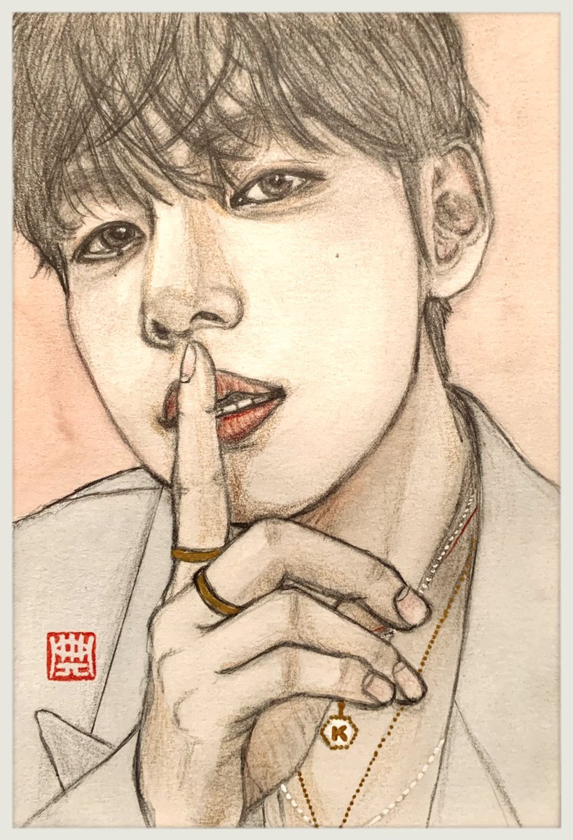 V 'Cartier' making タイムラプス (2時間くらい)絵墨まで 水彩色鉛筆+金ボールペン(顔料) 椅子の脚の間で描いたので出来上がりはイマイチ😭時間だけかかった💦 とりあえず記録用 #BTS #btsfanart #タイムラプス #making #鉛筆画 #絵墨 #水彩色鉛筆 #カラーイラスト pic.x.com/5xK9Kn7q6U