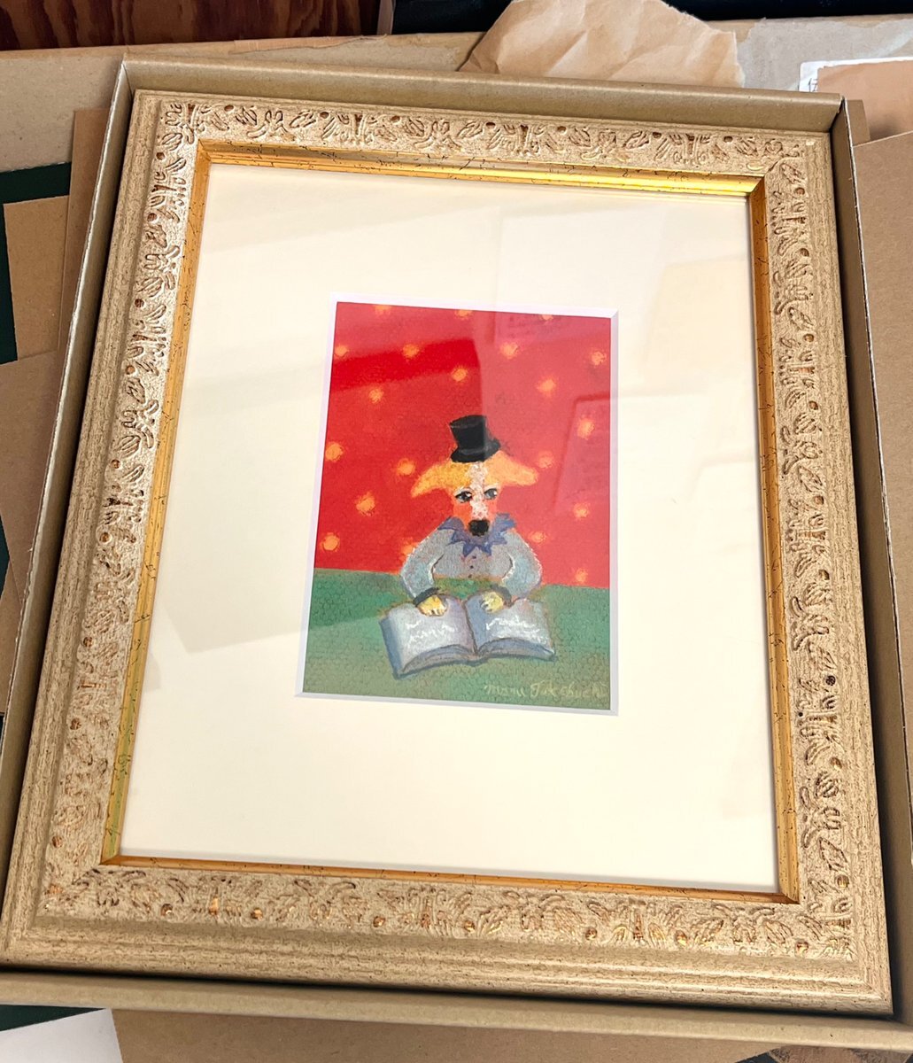 ハガキサイズの小さめの絵を額装しました。きいろい犬を描いたパステル画です。周りの装飾とゴールドのラインがアンティークな雰囲気〜🫖 17日からの展示会につれていく予定です。 #個展 #展覧会 #絵画展 #犬の絵 #絵描きさんと繫がりたい #メルヘンアート #アート #竹渕まゆ #art #pastel pic.x.com/gfITFQwcrY