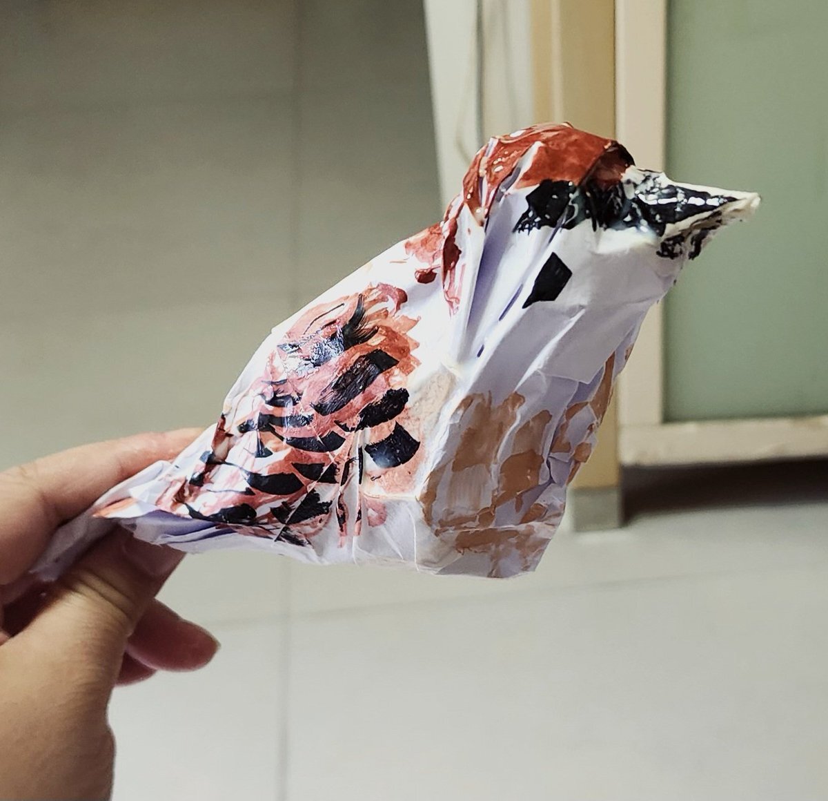 カバンが小さいのに出先でつい夜見さんの持ってないぱぺを見つけて買ってしまい急遽持っていたカラビナで括る事態に