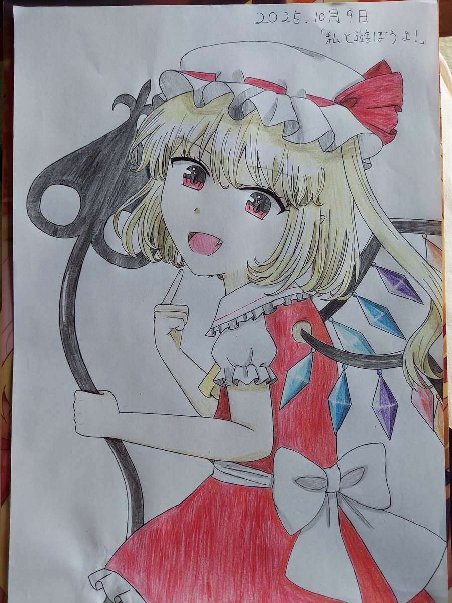 お姉ちゃんを描いたんだから妹も描こうってことで、数年ぶりのフランちゃん! ※目の描き方は霊夢たちと少し異なる #東方Project #絵描きさん交流会 #絵描きさんと繋がりたい #東方イラスト #絵描きさんと仲良くなりたい #みんなで楽しむTwitter展覧会 pic.x.com/8c2vX6Hyau
