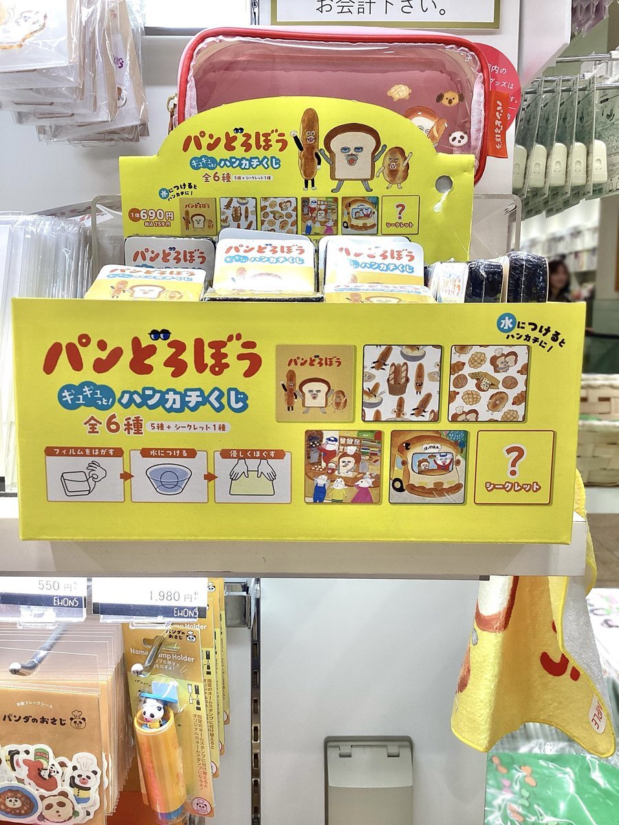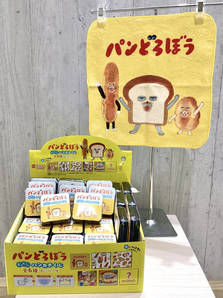 新入荷✨『#パンどろぼう』のハンカチくじ🍞 絵柄は全6種!ブラインドタイプで何が出てるかはお楽しみ🌟 包装紙をはがして、水にぬらしてほぐしてから使用できます👍 ぜひ店頭にてご覧ください♪ #柴田ケイコ #KADOKAWA #ehons #ehonstokyo #絵本 #絵本のある暮らし pic.x.com/be4ONhmwqJ
