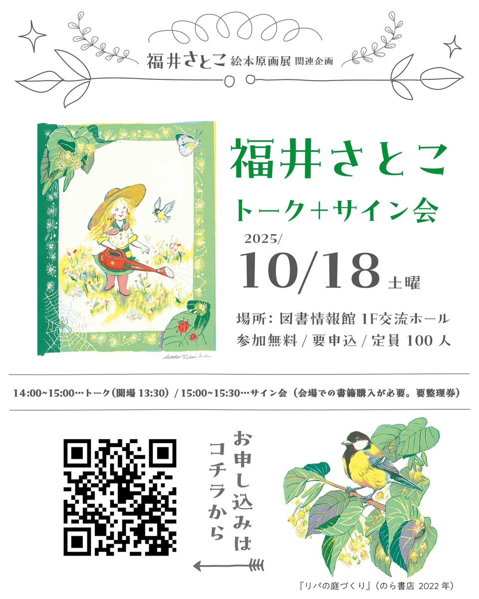 <参加申込受付中> 福井さとこトーク+サイン会 福井さとこ絵本原画展 関連企画 トーク+サイン会を開催します。 詳細&申込 library.pref.nara.jp/event/4618 #福井さとこ #奈良県立図書情報館 #スロバキア #ブラチスラヴァ #絵本原画展  #奈良県 #奈良 #図書館 pic.x.com/jWXRcYPxo9