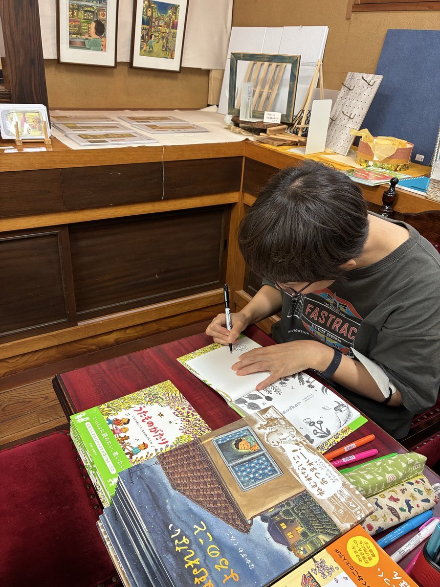 明日からギャラリーコーナーでは 「なかざわくみこ絵本原画展」がはじまります✨️ 今日はなかざわくみこさんが設営に来てくれました! 今、どっさりサイン本を作ってくださっています५✍ 著作絵本全タイトルご用意しています😊 ほのぼの素敵な原画に会いに来てください! #佐倉市 #絵本原画展 pic.x.com/BzeWFuthGG