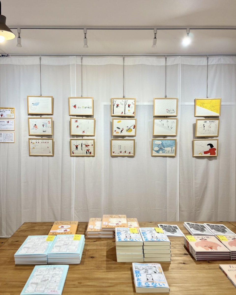 初日を終えました! #藤岡拓太郎 さん #絵本原画展 🙌 もともとファンの親子さんが来てくれたり、絵本屋へご来店のお客さまが見てくれたりと、 みなさんフフッとしていってくれています。 #ぞうのマメパオ #たぷの里 pic.x.com/EklI1u573f