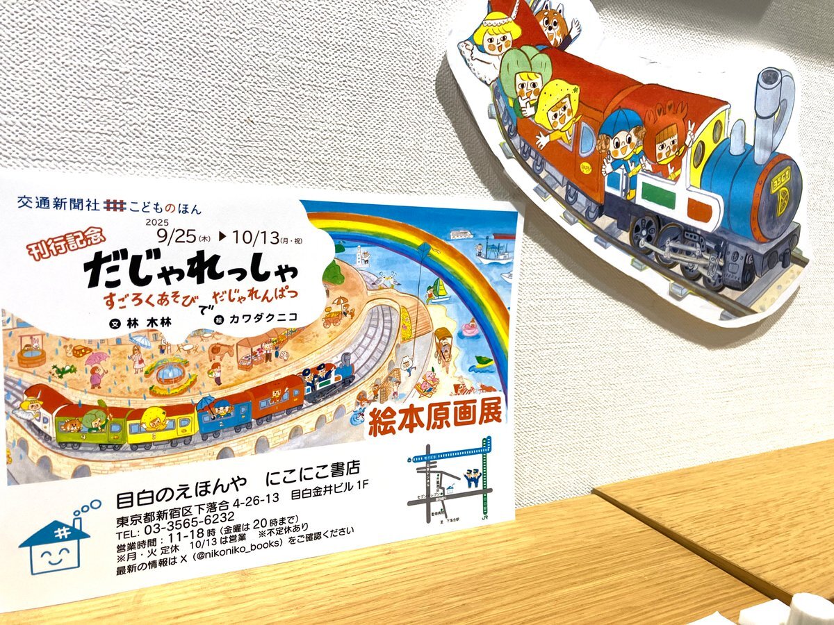 東京目白のにこにこ書店@nikoniko_booksさんでは『だじゃれっしゃ すごろくあそびで だじゃれんぱつ』文:林 木林 絵:カワダクニコ @kawadakuniko#交通新聞社 )絵本原画展を9/25(木)〜10/13(月祝)まで開催中! #カワダクニコ #林木林 #にこにこ書店 #絵本 #絵本原画展 pic.x.com/LUZX7AU2Yw