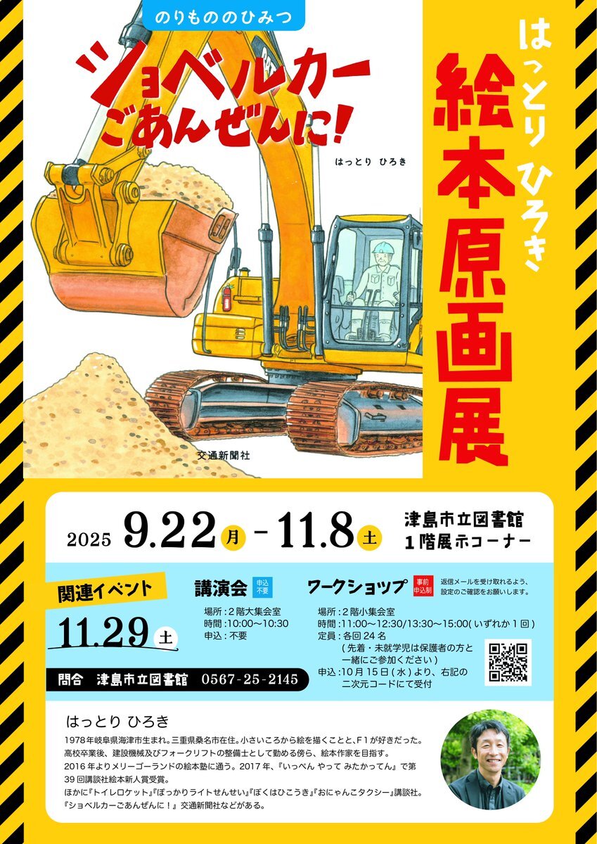 #はっとりひろき さん #絵本原画展 開催中!】みんなが大好きなはたらく車から、ショベルカーのしくみやはたらきを丁寧に描いた絵本『ショベルカーごあぜんに!』の原画を中心とした絵本原画展です。貴重な原画を間近で見られるチャンスです。ぜひごゆっくりご覧ください。期間は11/8(土)まで。 pic.x.com/TmkLSYoE6W