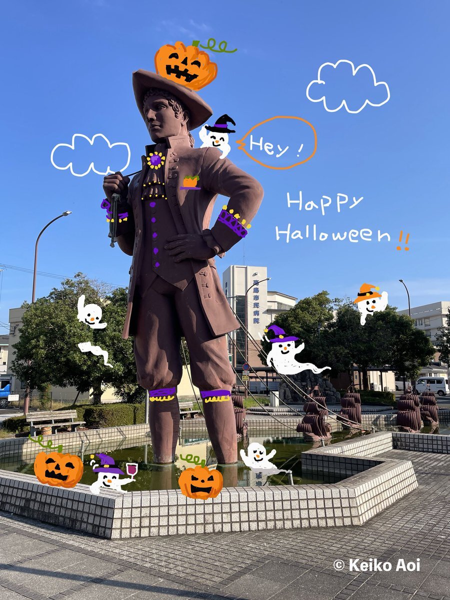 滋賀県高島市 近江高島駅前にありますガリバー ハロウィンペイント🎃してみました〜 高島町の山の方に アウトドアを楽しめますガリバー青少年旅行村があります〜🏕️ #Halloween2025 #高島市 #滋賀県 #しがトコ #ガリバー青少年旅行村 #painting #絵本風 #近江高島駅 pic.x.com/JlSnhkONXm