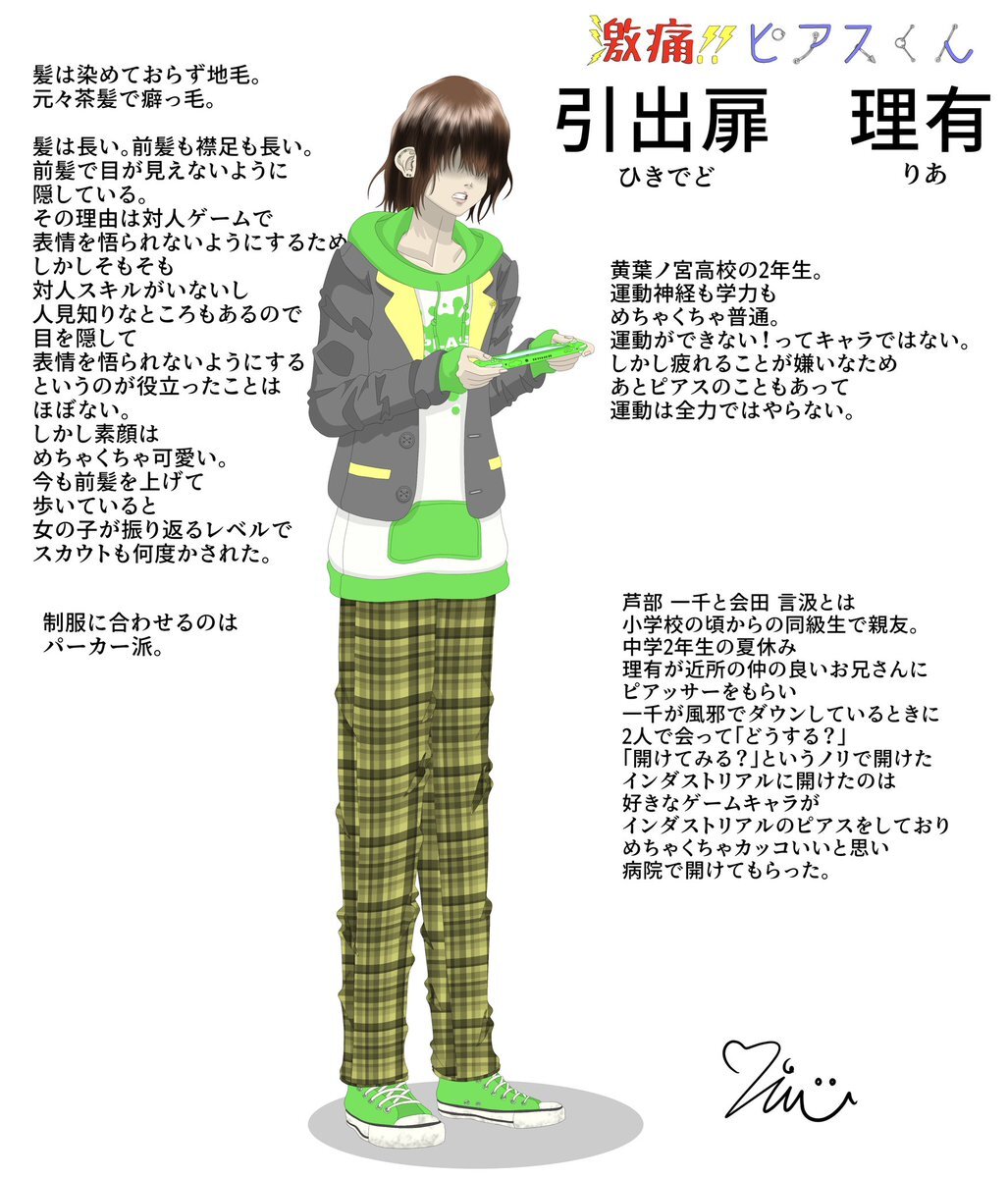激痛!!ピアスくんの引出扉 理有の私服versionと 軽い設定を添えて描きました 髪下ろしてるのがデフォなので デフォの制服versionも投稿します #イラスト #イラスト風 #オリジナル #オリキャラ #絵柄が好みって人がいればいいなぁ #絵柄が好きっていう人と繋がりたい #ピアス #激痛ピアスくん #創作 pic.x.com/yeX90XydxQ