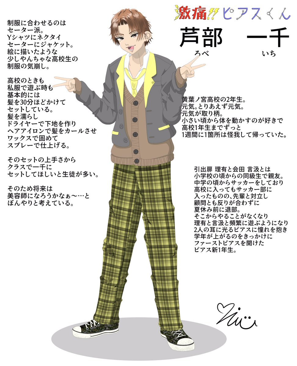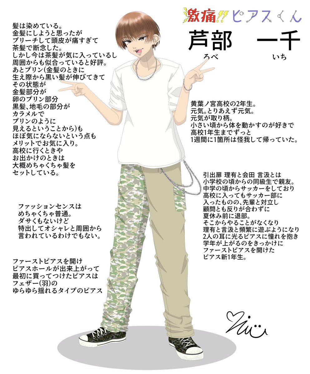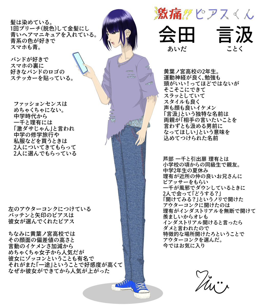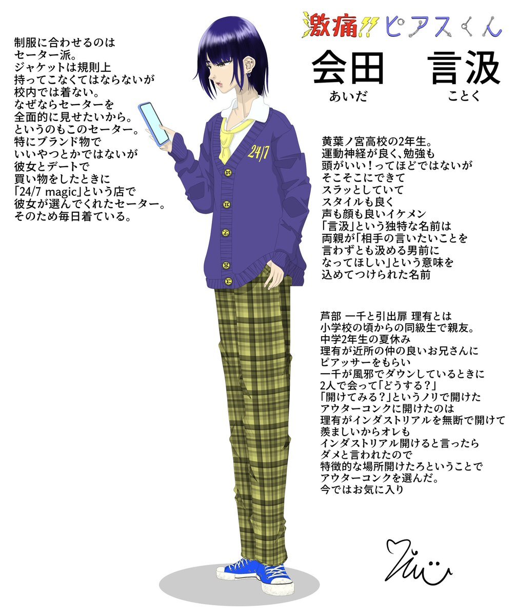 激痛!!ピアスくんに出てくる会田 言汲くんの 私服versionと軽い設定を描きました 制服versionも投稿します #イラスト #イラスト風 #オリジナル #オリキャラ #絵柄が好みって人がいればいいなぁ #絵柄が好きっていう人と繋がりたい #ピアス #激痛ピアスくん #創作 pic.x.com/uPH5zYskH7