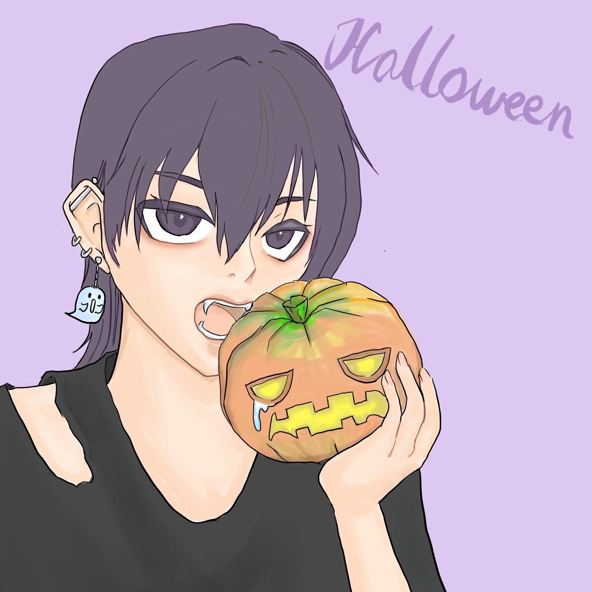 かぼちゃをがぶり #イラスト #イラスト好きな人と繋がりたい #ハロウィン #illustration #絵柄が好みっていう人にフォローされたい #Halloween ※個人的にはおばけのピアスがお気に入り pic.x.com/IuwdlbTDce