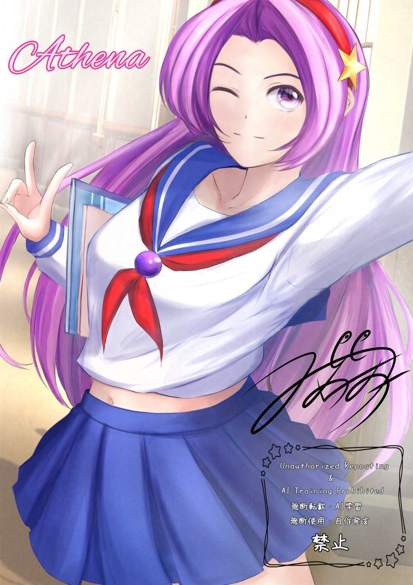 アテナ「次の授業に行っきま~す✨」 教室移動中にパシャリ(*^ー゚)🤳 #格ゲーキャラ描こうぜ #KOF