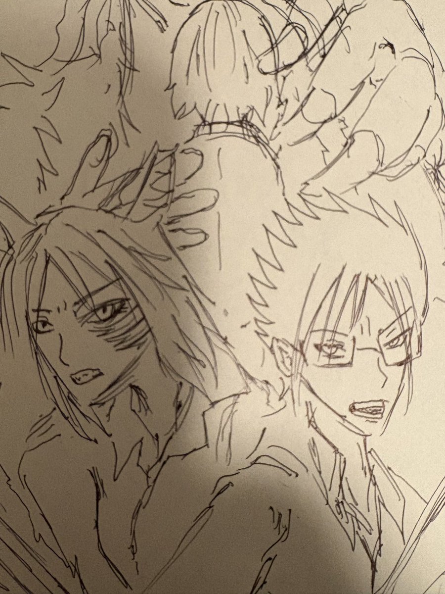 完成品をお見せできたらよかったのですが、時間の関係上色塗りは帰ってからかも(ーー;)。 ラフ線画の一部のみ公開します。 今日の朝活【神奈起源篇】キービジュ風です。 仕事に行って参りますね。 #OC #一次創作 #朝活 #線画 #絵師さんフォロバ100 #ボールペンイラスト #絵柄が好みな人と繋がりたい pic.x.com/eBA7kZ1Aqw