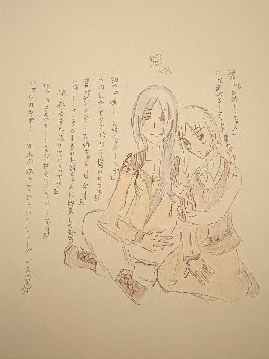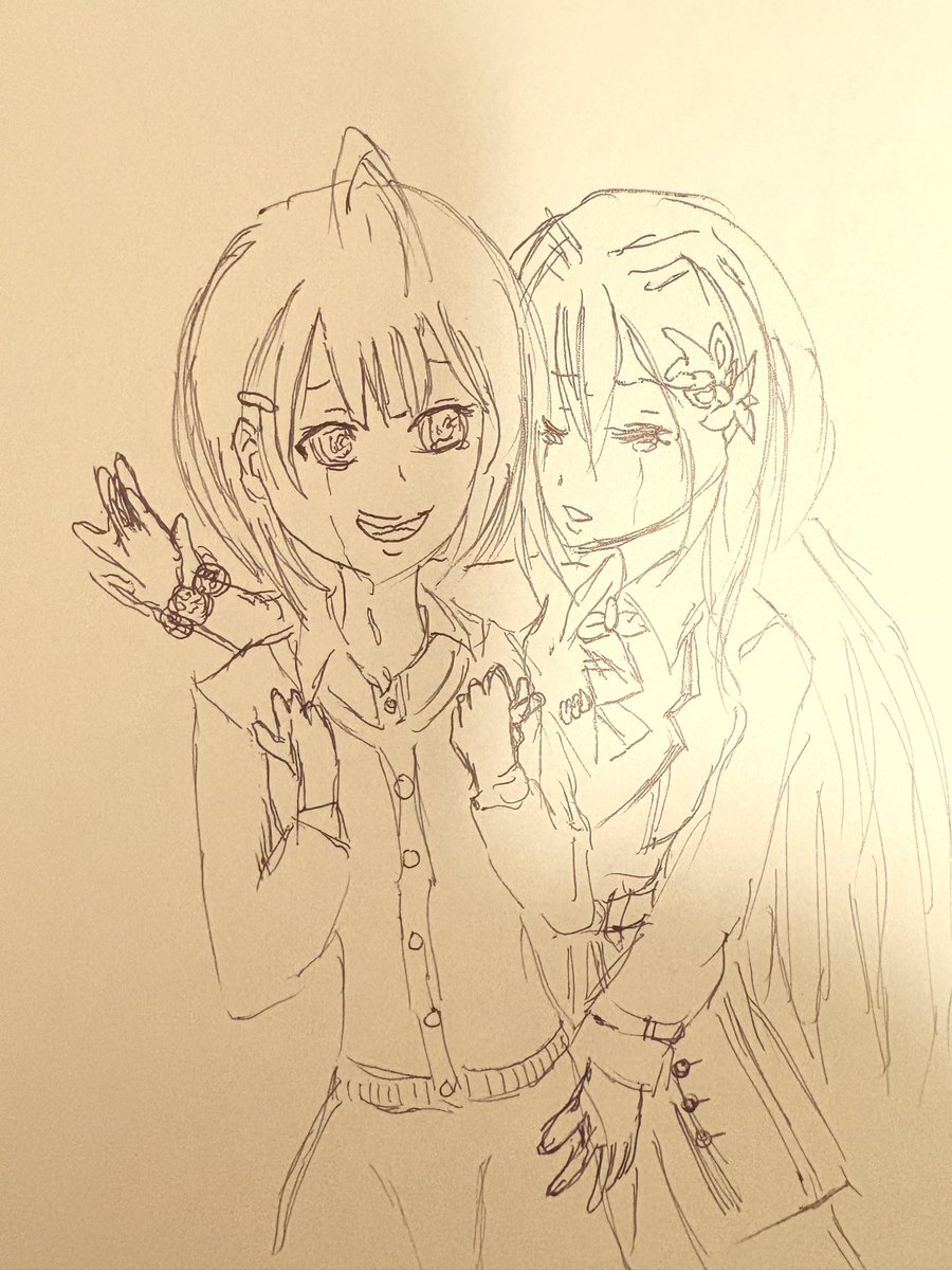 アスマデウスとの戦い終了後。結局依存度を高めてしまった碧と、美波に代わる姉ポジに選ばれた"長女"ハウンドの図。18歳姉と21歳妹。 #OC #一次創作 #自創作に狂っている人間と繋がりたい #絵師さんフォロバ100 #アナログイラスト #百合 #絵師さんと繋がりたい #ウチの子 #絵柄が好みな人と繋がりたい pic.x.com/4snlcaoQyT