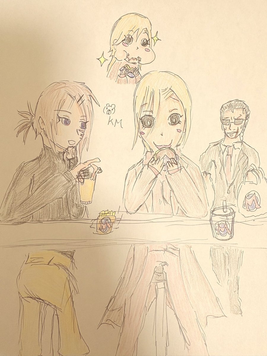 お◯き見バーガーを特別に食べさせて貰いテンション爆上がりの好ちゃん。公安監督役の能登さんは荷物持ちです(笑) #オリキャラ #一次創作 #ハンバーガー #自創作に狂っている人間と繋がりたい #絵師さんフォロバ100 #絵柄が好みな人と繋がりたい #ウチの子 #絵師さんと繋がりたい #アナログイラスト pic.x.com/iRnto7aTdy