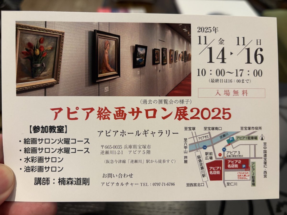 【お知らせ】 アピア絵画サロン展2025 11月14日(金)〜16日(日) 10時〜17時 (最終日16時まで) アピアホールギャラリー 宝塚のアピアカルチャーさかせがわ教室の生徒さんたちだけの展覧会を開催します。 お近くにお越しの際はぜひ観に来てね😋 #絵画展 #グループ展 #宝塚 pic.x.com/Hojc7LBJ9t