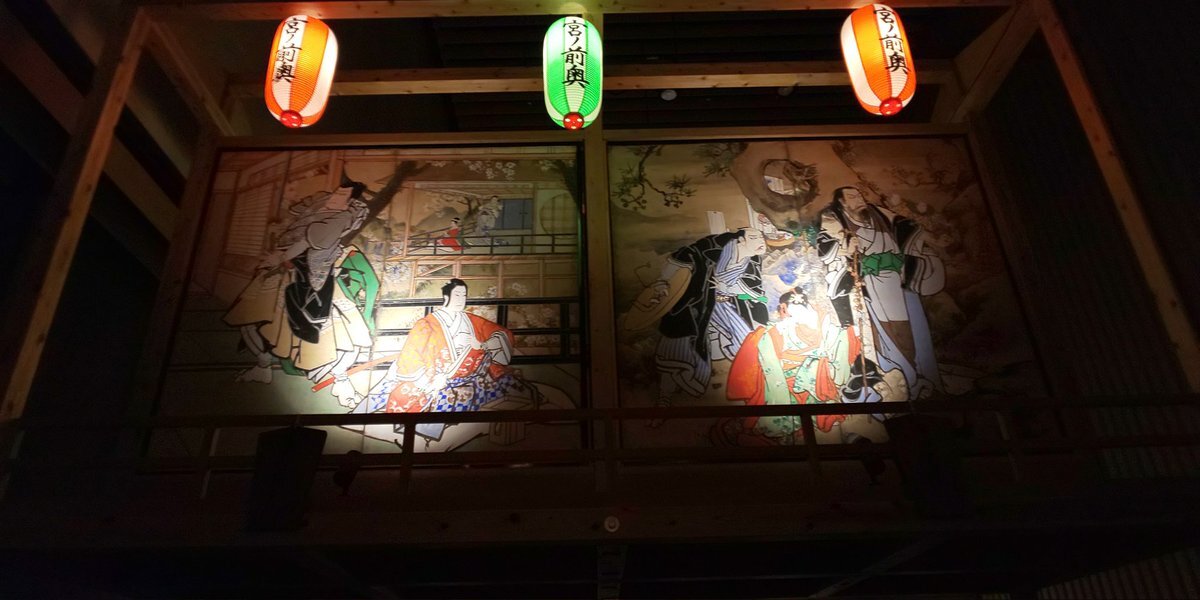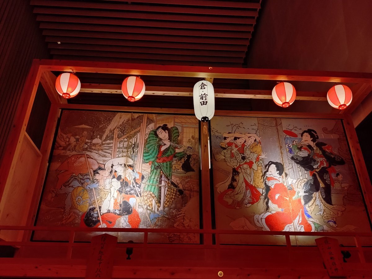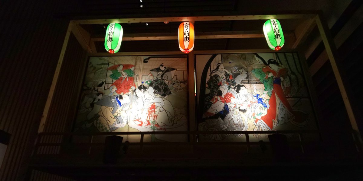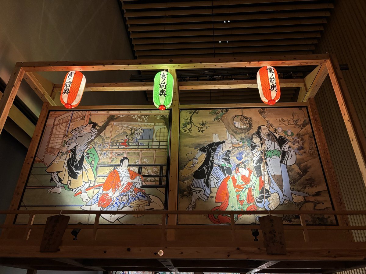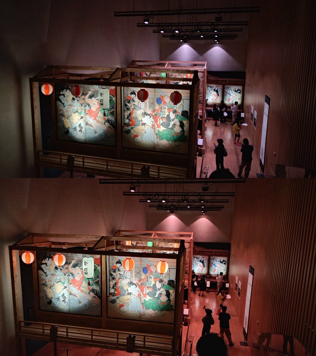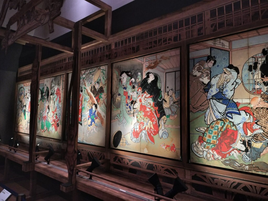 #絵金展 『紙雛図』は鼓を持つ女雛の脇で踊り出しそうな男雛。 あべのハルカスの絵金展とは、いろいろ違っていた。 演出も凝る。『伊達競阿国戯場累』と絵馬屋台は明るさを変え、絵金祭を再現。 #Bura_Bi_Now #ぶら美 pic.x.com/1yUdlXUJEX