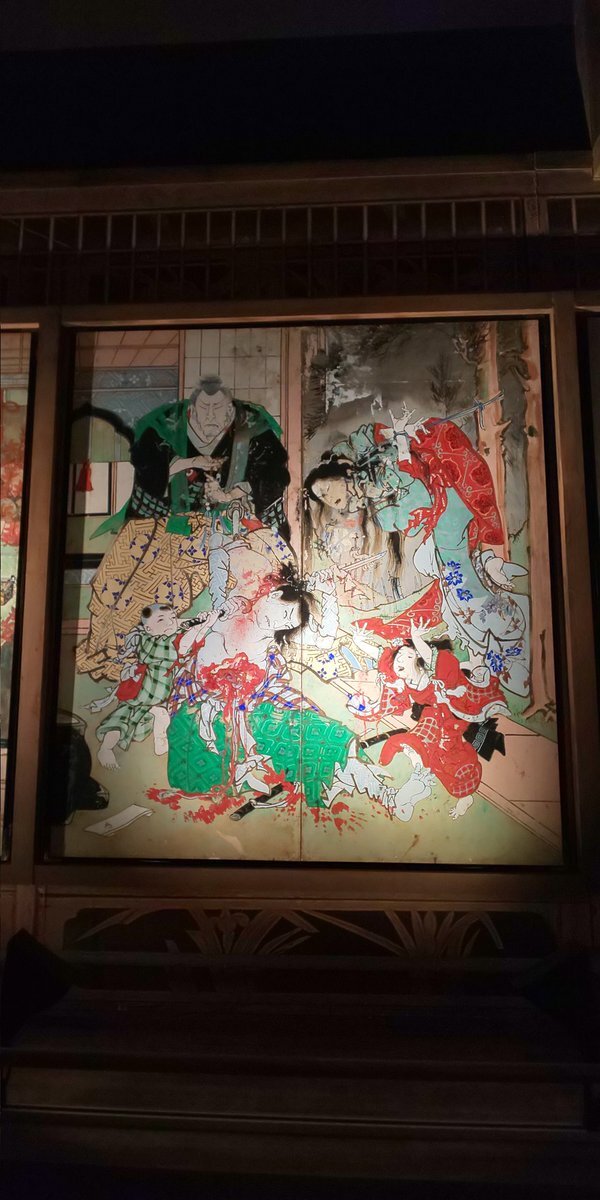 サントリー美術館「#絵金展」後期2回 フォトスポット登場。前期に絵金ナイトでも撮影。 2回めは、例の校外学習と関係なく、『美の巨人たち』効果でかなり混み合う。 芝居絵屏風は刺激的な場面が多い。血が流れないのは葛の葉と宗吾の子別れくらい?ストーリーも救いが無い。 #Bura_Bi_Now #ぶら美 pic.x.com/c3KnjjvGcm