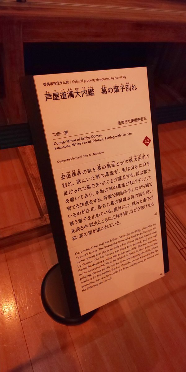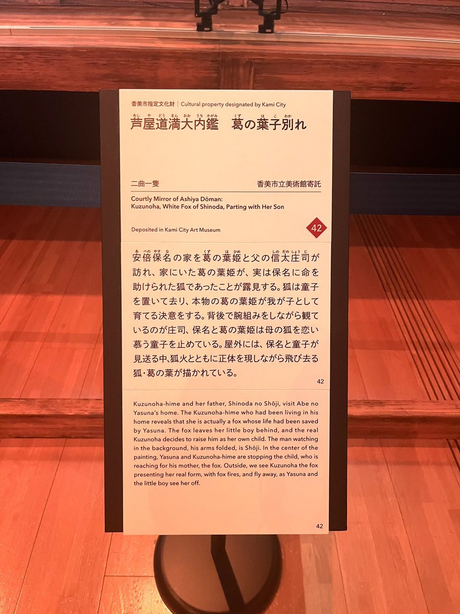 #絵金展 !!滑り込みで行けました! ヨカッタ!!! 芝居屏風絵を初めて見ました。 一枚の絵の中に色鮮やかに物語が描かれる。 おどろおどろしくも、物悲しくもある屏風絵にユーモアを織り交ぜる手腕。 大迫力でした! 葛の葉姫。安倍晴明の母とされた人ですよね。じゃあこの童は安倍晴明なのかな🤔 pic.x.com/aWJU7XdRLK