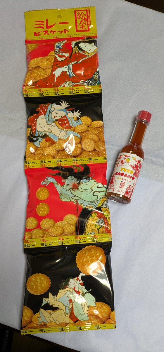 「絵金展」へ 絵金柄のミレービスケット ユズカラッソ お買い上げ #絵金展 #サントリー美術館 pic.x.com/2928GrKTMn