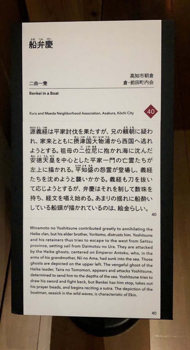#絵金展 →ただよく見ると絵と解説は『船弁慶』なのに、『義経千本桜』壇ノ浦の段ってあるんですよね。 『義経千本桜』大物浦だと、知盛は亡霊じゃなくて生きていた伝説だから、このあと錨担いで入水するんですよー。と、こないだ観たから。 x.com/Liddell2_0124/… pic.x.com/43E21CPqSL
