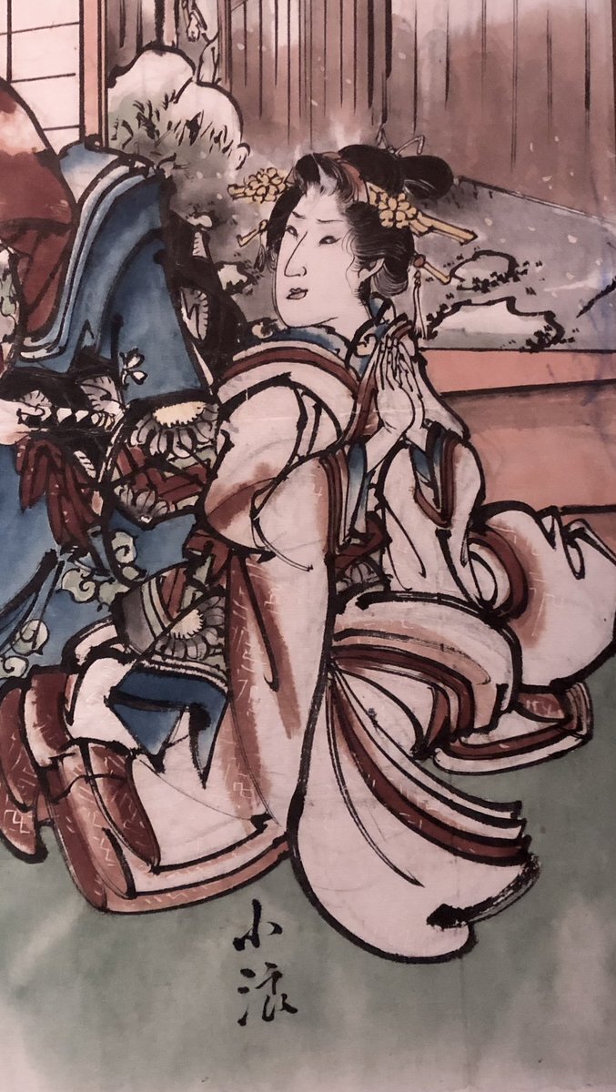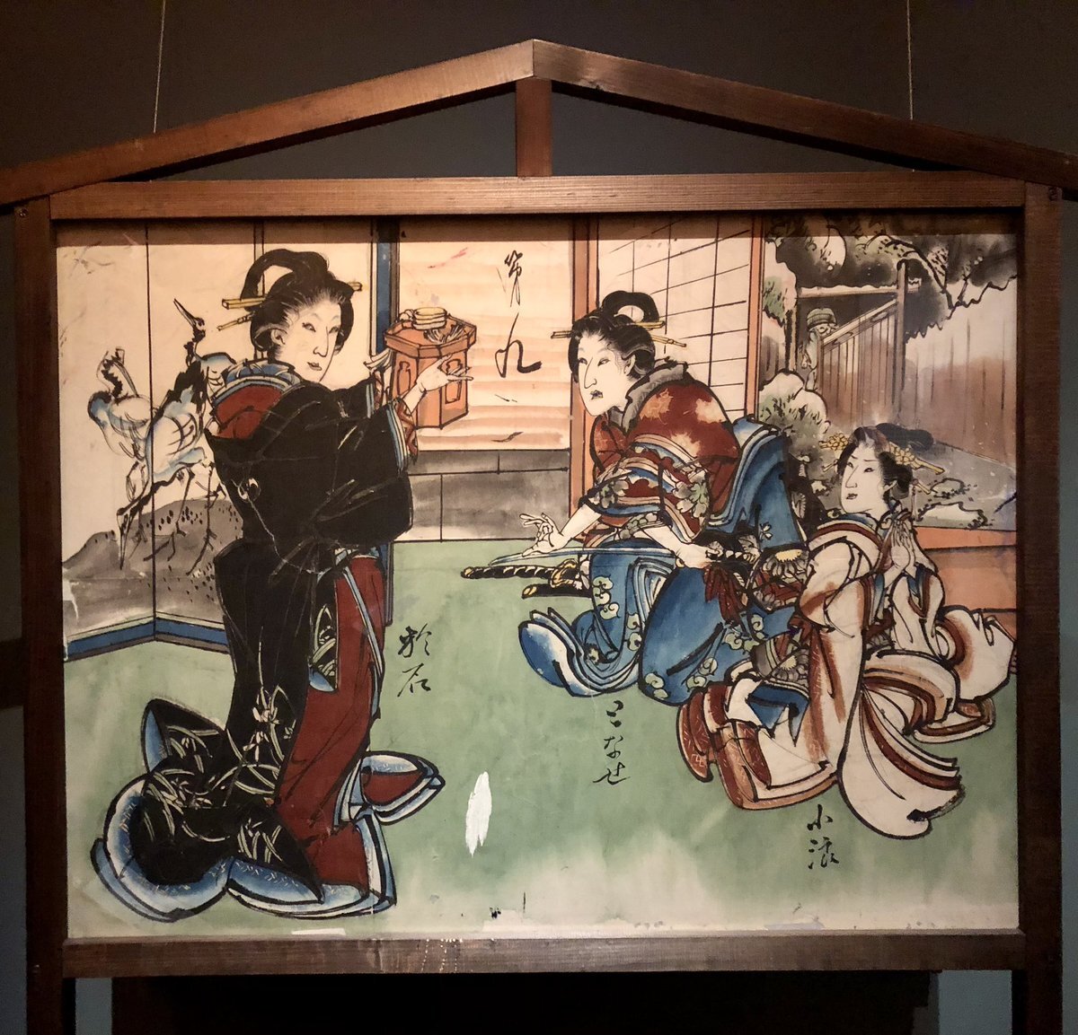 #絵金展 絵馬提灯『図太平記実録代忠臣蔵』、前期の二段目に続き、後期の九段目「山科閑居」目当て。小浪~。奥に虚無僧(本蔵)がいます。(色が揃ってないのは照明が変わるから) もう1枚撮影不可スペースに。 pic.x.com/U0tMEvySpH