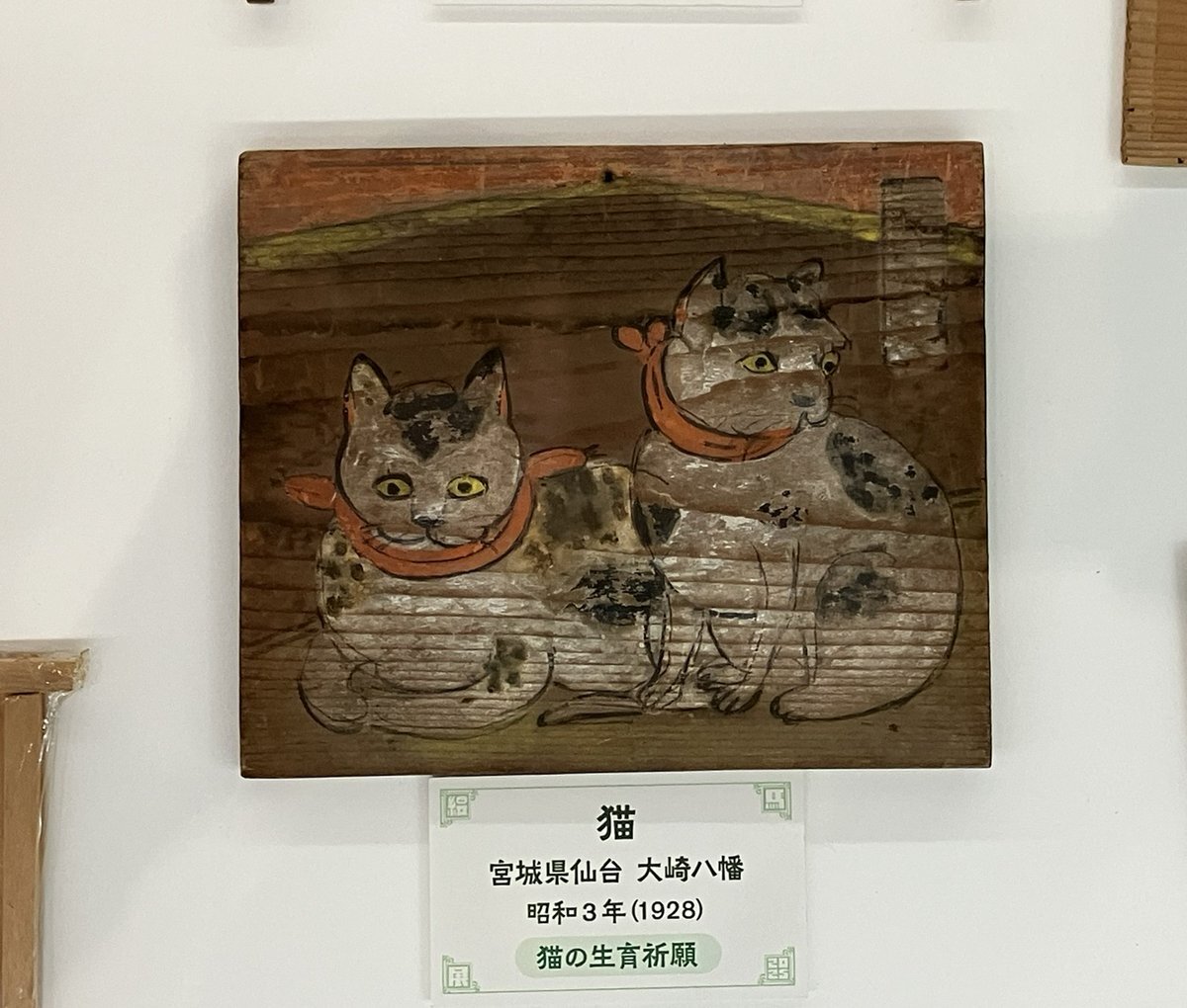 〈企画展「#絵馬展」開催中〉 かわいい猫の絵柄のこちらの絵馬、 願いは「猫の育成」、昭和3年の絵馬です。 家族の一員でもある 猫の健康は、今も昔も変わらない願いの一つなのですね。 #猫の絵馬 pic.x.com/5YTtxL8uLe