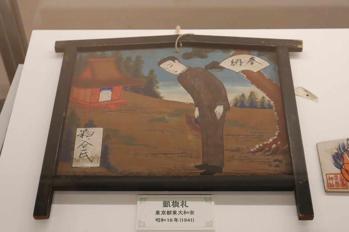 〈企画展「#絵馬展」開催中〉 絵馬の絵柄や願いは、時代や地域によって様々で、その時代の人々の生活の一端を見ることができます。 この絵馬には、無事に凱旋したことに対するお礼の意味が込められています。 昭和10年代、一般の人々の出征が頻繁になるに従い、このような軍人絵馬が増えました。 pic.x.com/5yj9BHETXw