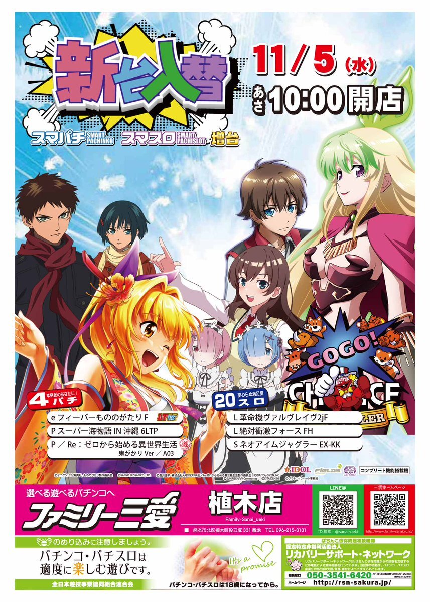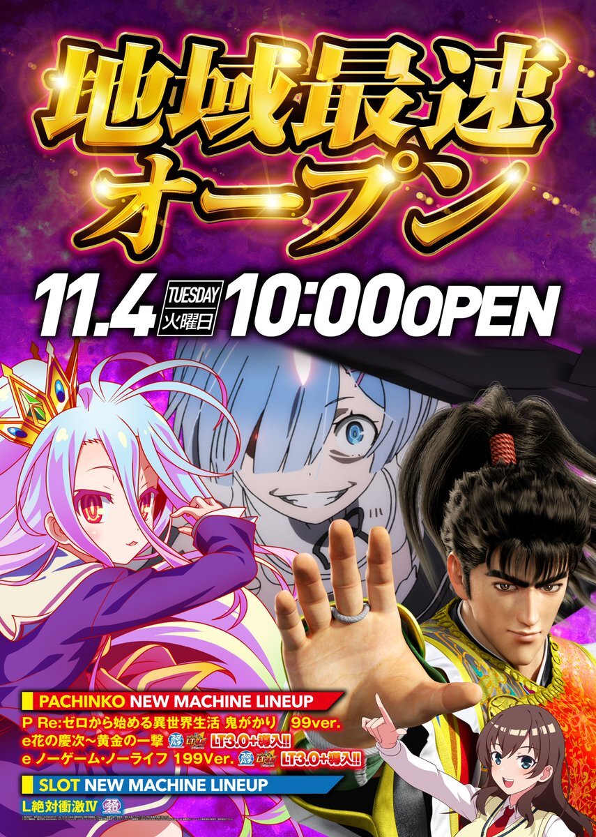 本日11月5日(水)は #新台入替 デス(*'▽') パチンコ #eもののがたり #海物語IN沖縄6 #Reゼロから始める異世界生活鬼がかりVer スマスロ #ヴァルブレイヴ2 #絶対衝撃フォース #Sネオアイムジャグラー を導入してお待ちしております(^_-)-☆ #パチンコ #スロット pic.x.com/UEsmuYZAR1