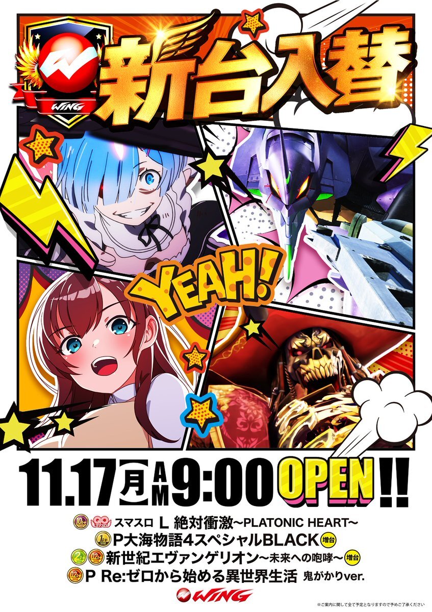 こんにちは #新台入替 #絶対衝激 #大海物語4スペシャルBLACK #新世紀エヴァンゲリオン #ゼロから始める異世界生活 増台!!増台!! #ウイング津店 皆様のご来店 お待ちしております🤩 pic.x.com/TSorNAQzAr