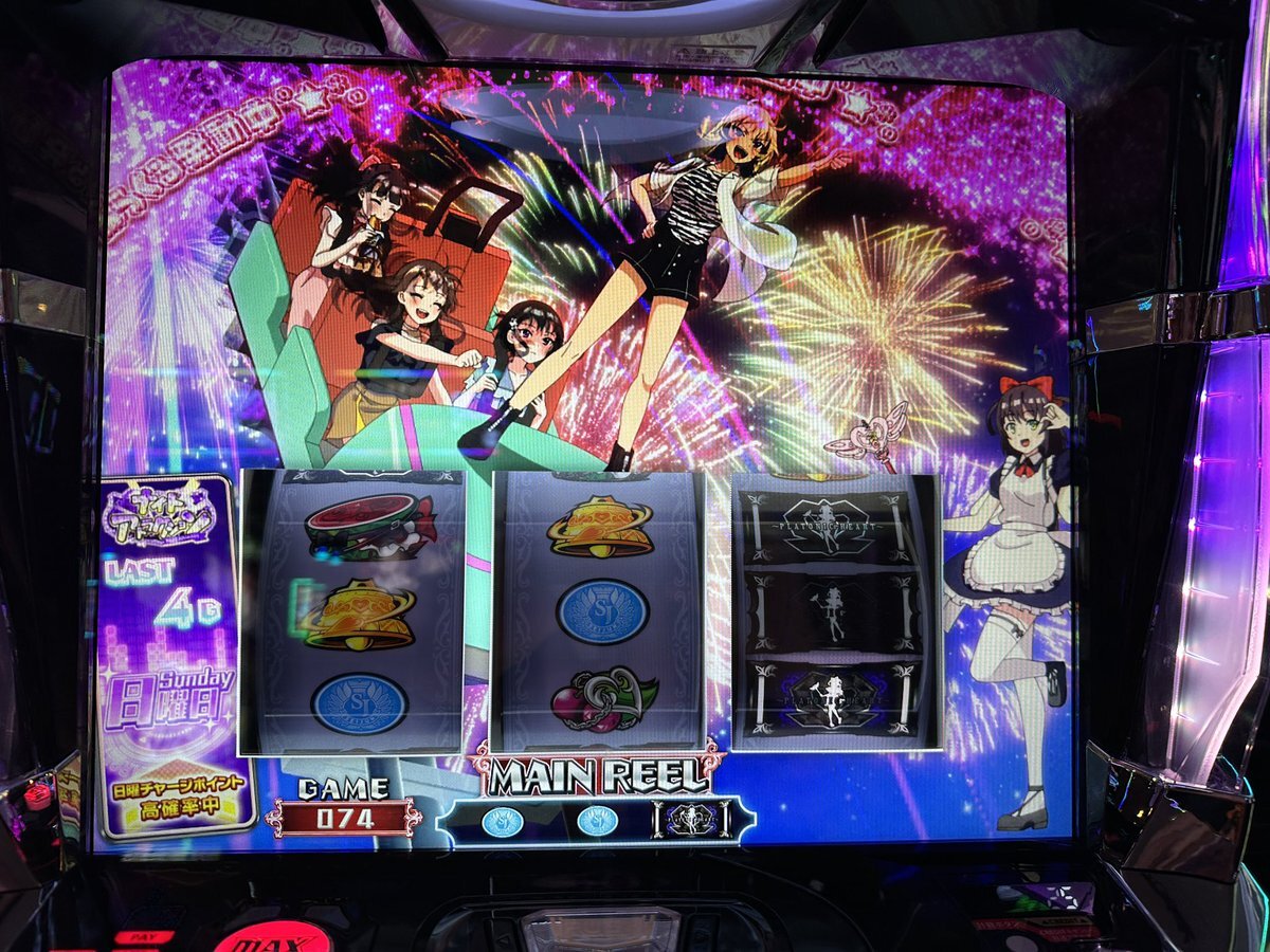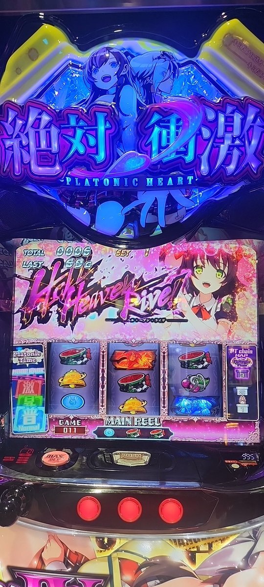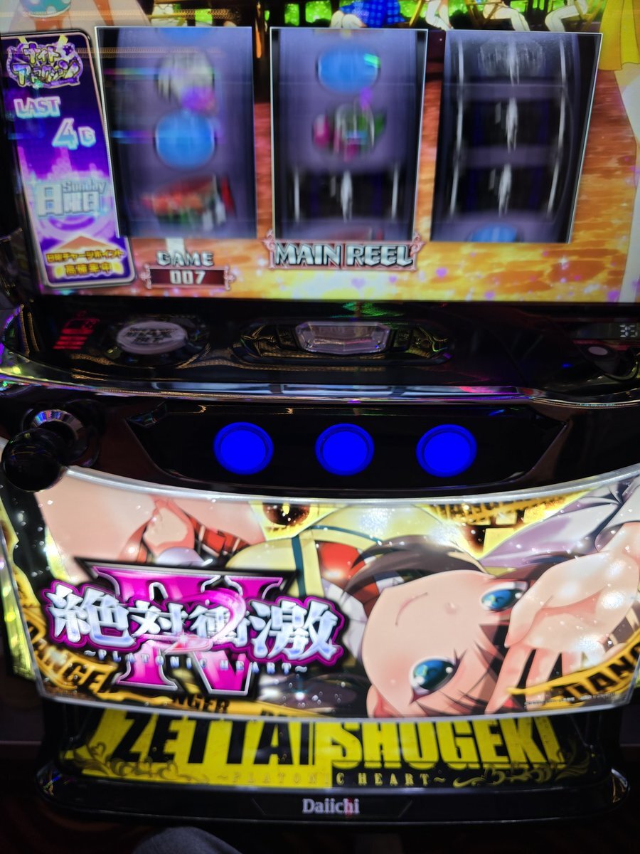 ヴァルヴレイヴに隠れて知名度低いけど、個人的に本命の絶対衝激4を初打ち😊 思ってたより面白い気するけど、ちょっと通常時が耐えですね😓ただ、ボーナス中の胸乱告知が個人的に大好き🤤 あと今作も下パネルが最高👍 #絶対衝激4 pic.x.com/jeo9wtx9mV