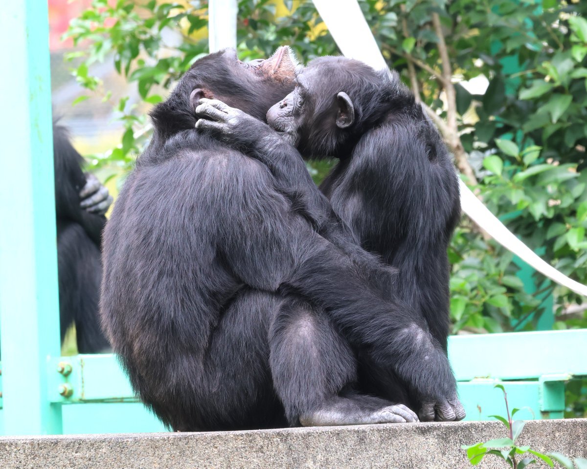 まだまだお母さんに甘えたいんだね🥰 仲良し親子です🤗 ついさっきまでお父さんもグルーミングしてましたよ😊 📸'25.11 #マモル 11歳 #マルコ 27歳 #チンパンジー #chimpanzee #絶滅危惧種 #日本モンキーセンター #JMC pic.x.com/fDepDAoXjp