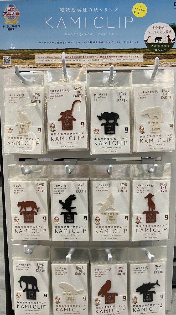 「KAMICLIP」(エイチ・アイ・エス)が新発売!!サステナブルな意識を広めることができる「絶滅危惧種」をモチーフにした紙クリップ。本や手帳のマーキングに最適。売上の一部はIUCN-Jに寄付し、絶滅危惧種の保護活動に役立てられます。#丸善 #有明ガーデン #KAMICLIP #エイチ・アイ・エス #絶滅危惧種 pic.x.com/gPHhW0hebu