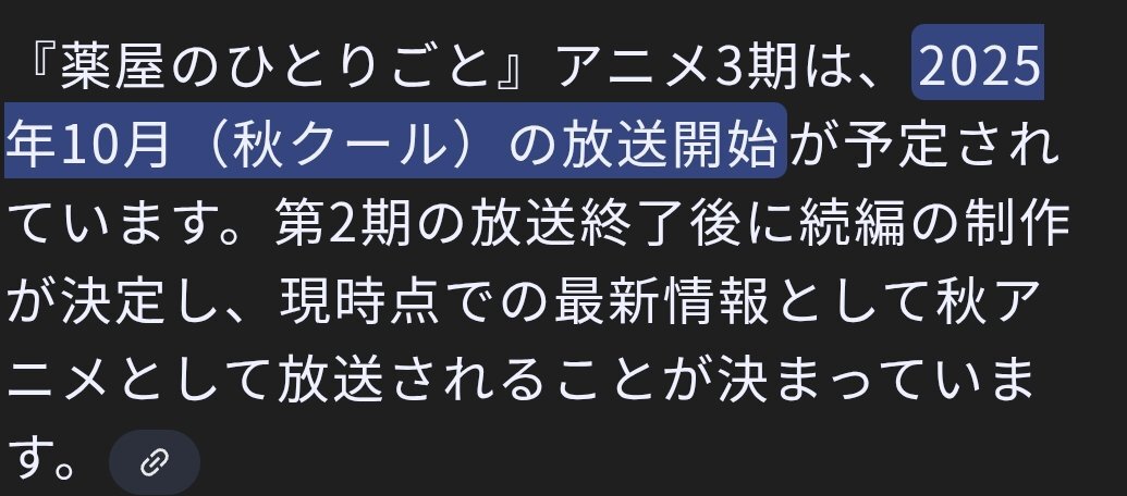 【薬屋のひとりごと3期について】 AIは本当に信じられない!!下の画像を見てください。 本当か、嘘かが、わからないが嘘だと思いますねぇ〜なんで今年2期やったのに10月に続編やるんだよ!? #薬屋のひとりごと #3期 #続編 #薬屋のひとりごと3期 #薬屋のひとりごと続編 #AIは信じられない pic.x.com/CWXObdHjUX