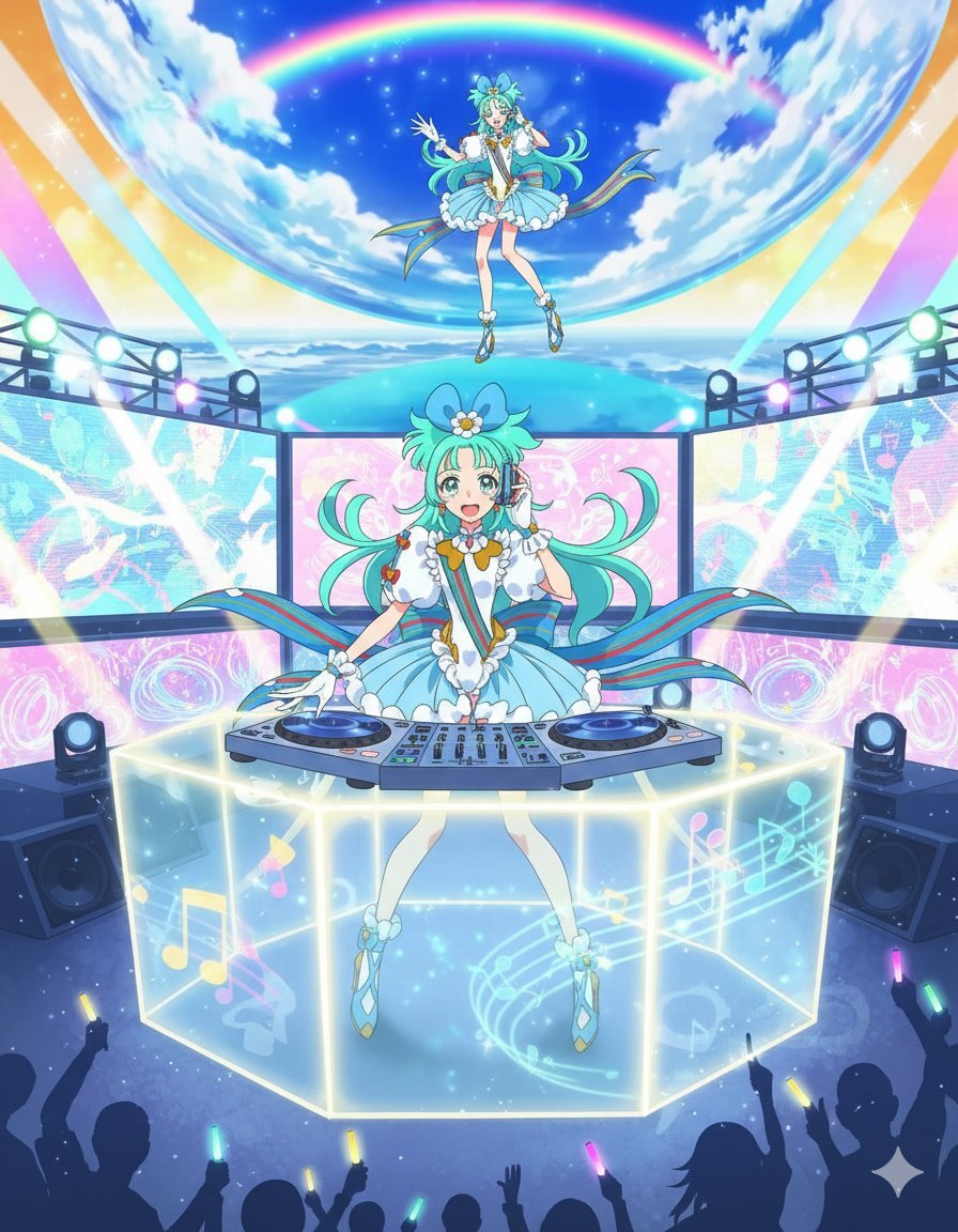 DJプレイする、DJプリンセス・リップル。 (※通称:DJリップル)その② #続編 #がんばれプリンセス #DJリップル #プリオケ #オルケリア @priorche_info #Gemini #gemini_art #AIイラスト pic.x.com/fK0wl74eY8 x.com/kei_shizuoka66…