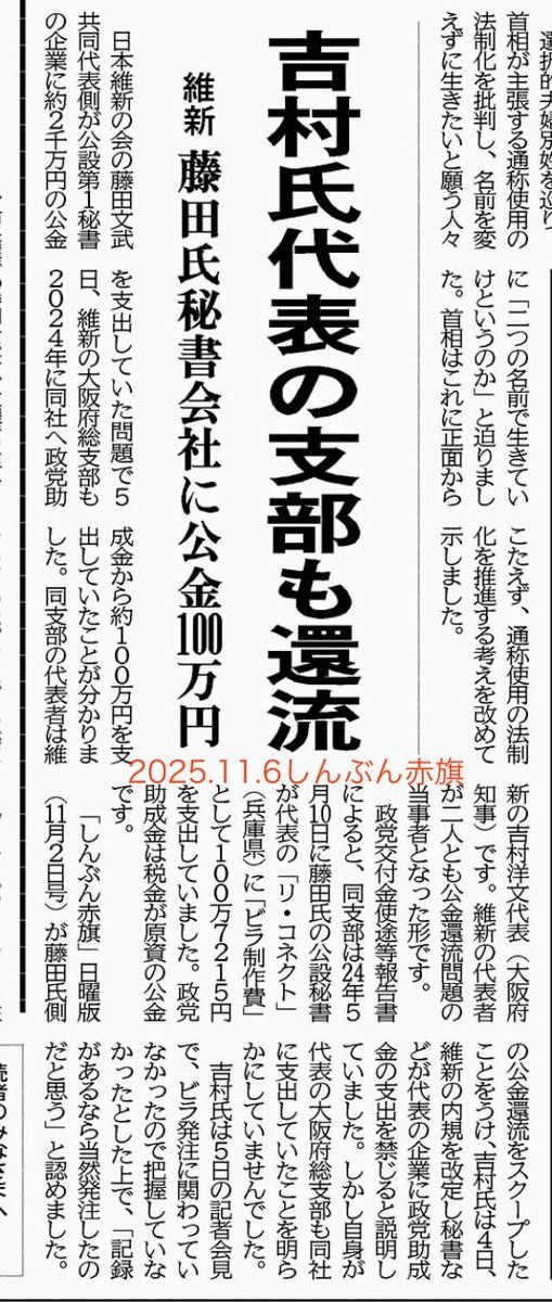 赤旗記者の名刺投稿した維新・藤田氏 専門家「犬笛行為に該当も」 mainichi.jp/articles/20251…