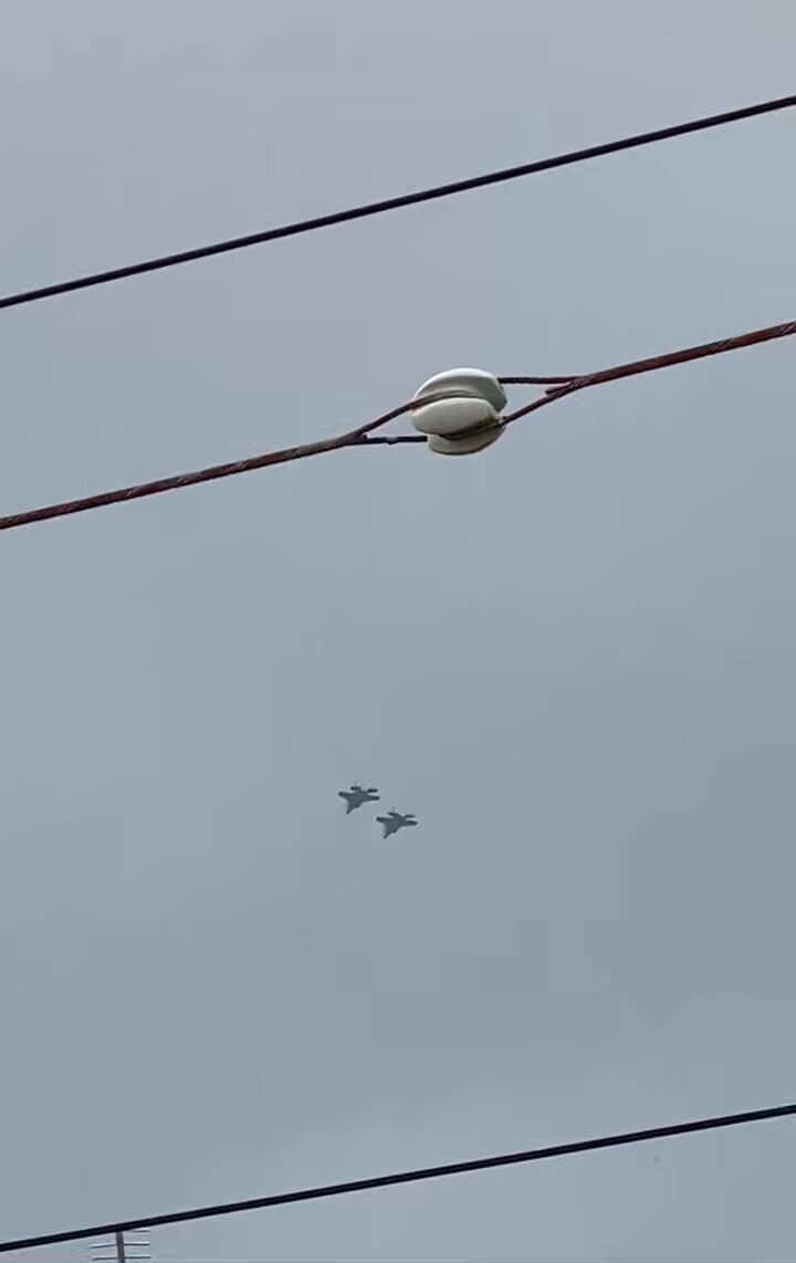 8:18 嘉手納飛行場から戦闘機2機爆音で離陸。勝連方面まで音が長く聞こえる #OHアラート