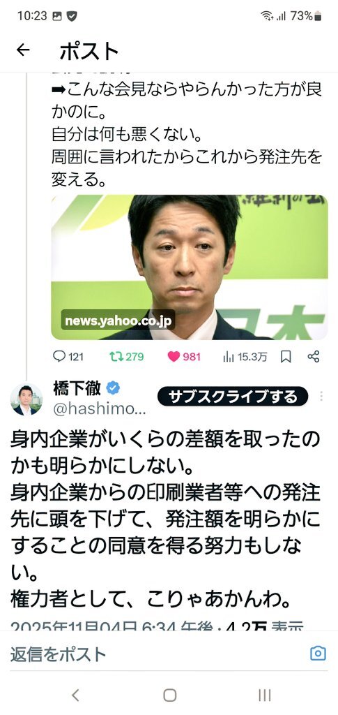 橋下徹氏「逆に僕は高市さんを評価」高市首相の自身給与削減方針 →大臣が給料下げるなら、社長も社員も全員下げる機運にしかならないだろうが #橋下徹は日本人の賃下げを喜ぶ反日売国奴 #維新は統一教会 #橋下徹は朝鮮ヤクザ #竹中平蔵が諸悪の根源 #維新は労働者の敵 news.yahoo.co.jp/articles/feb59…