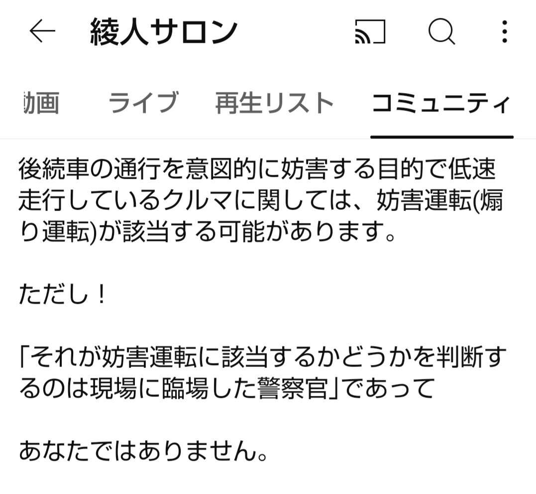 まず、一般道で起きた事案は交通警察隊か? その場を管轄する警察署だろ綾人サロン 警察から晒し行為は法に触れないと正式に回答を得ている と明言しているが、正当化し信者を騙す為の大嘘 得てるなら署名を公開できるだろ そもそも煽り運転に該当するか否か判断するのは警察官なんだろ?#綾人サロン pic.x.com/Yv4lyQAr5x