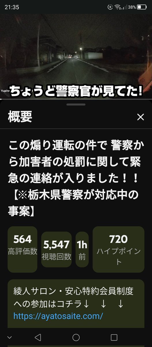 [栃木県警察] (11/04) ■通報から犯人確保までの一部始終 煽り運転を通報したら エグい警察沙汰になった… youtube.com/watch?v=DiZQMz… (11/05) ■栃木県警察が対応中の事案 この煽り運転の件で 警察から加害者の処罰に関して 緊急の連絡が入りました!! youtube.com/watch?v=loHTBM… #綾人サロン pic.x.com/i4c1f4rWnM x.com/G33E_666_369/s…