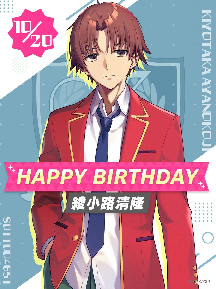 【🎉ハッピーバースデー🎉】 本日1⃣0⃣月2⃣0⃣日は #綾小路清隆 (CV #千葉翔也) の誕生日🎂 お誕生日を祝して ・ダイヤガチャチケット1⃣枚 を皆様にプレゼント🎁 #ようマジ ゲーム内のお知らせよりお受け取りください✨ #ようこそ実力至上主義の教室へ #よう実 #you_zitsu pic.x.com/0og9vfeBCX