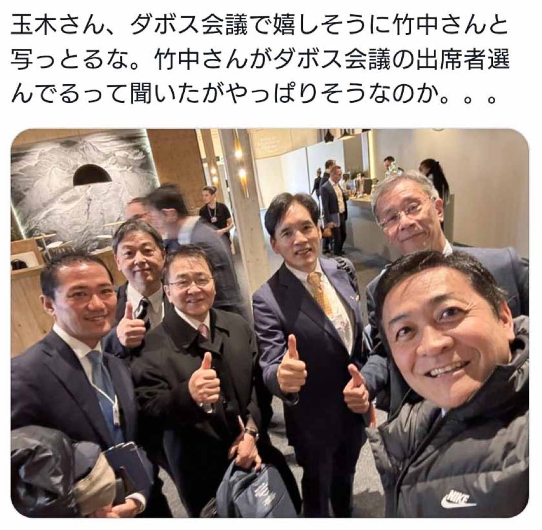 世界経済フォーラム(WEF)に竹中平蔵の推薦で呼ばれ、ダボスで嬉しそうにグローバリスト達と写真を撮ってるのを見て確信しました… 玉木は…竹中とグローバル利権に魂売ったな…と………