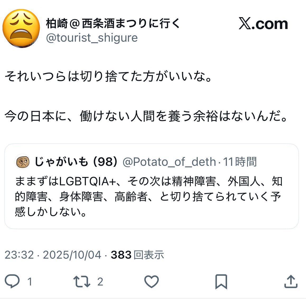 クソッタレ日本政府 この国民置き去り政策は何なの? 革命起こして欲しい富豪なの? #緊急事態条項絶対反対 #JICA解体 #さよなら自民党 #さよならグローバリズム #JICAアフリカ・ホームタウン計画反対 x.com/tafutafu414/st…