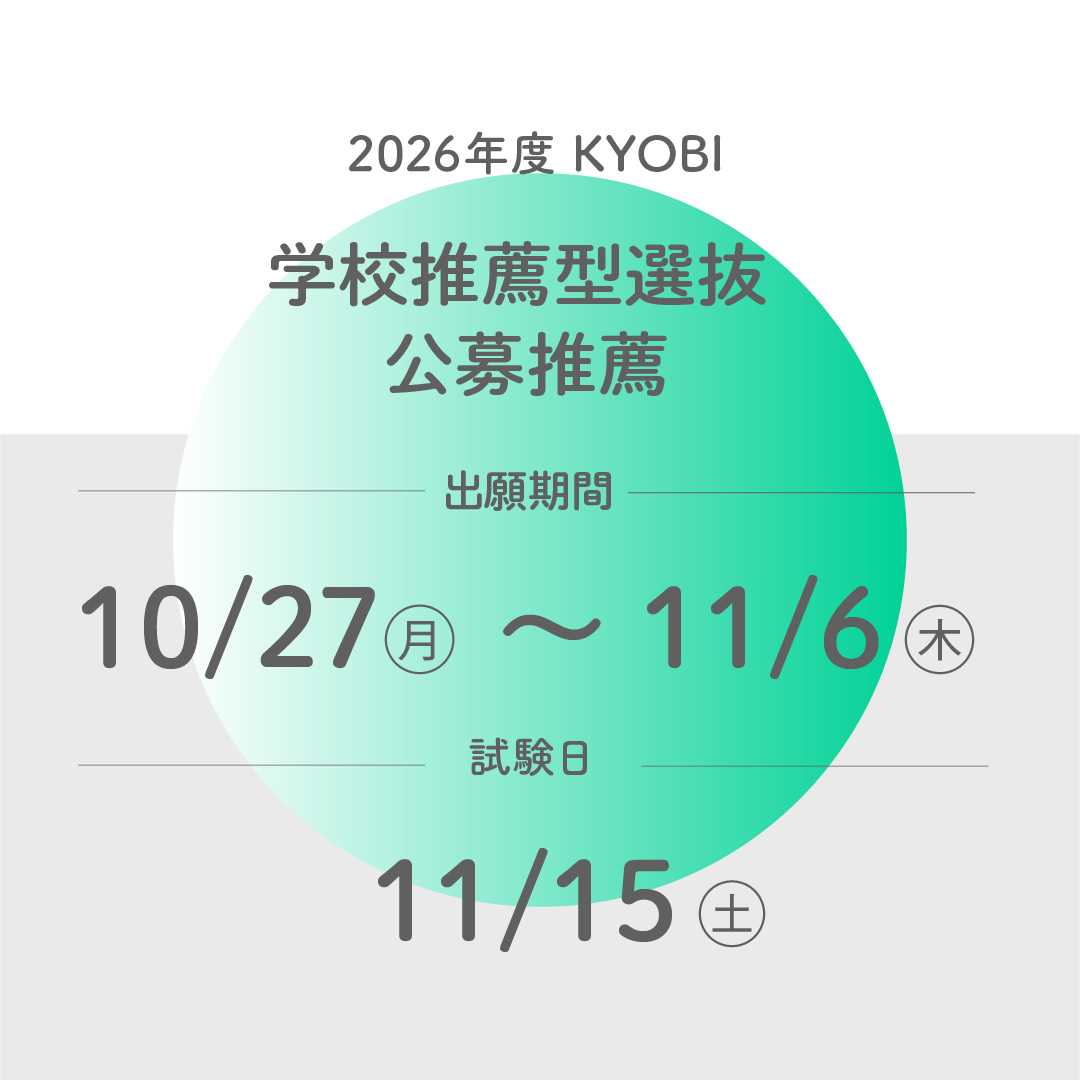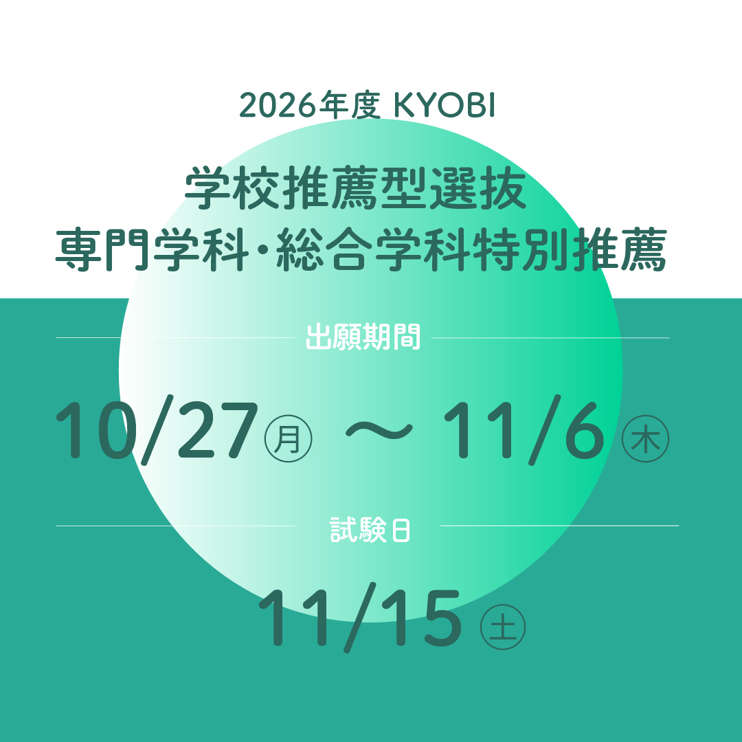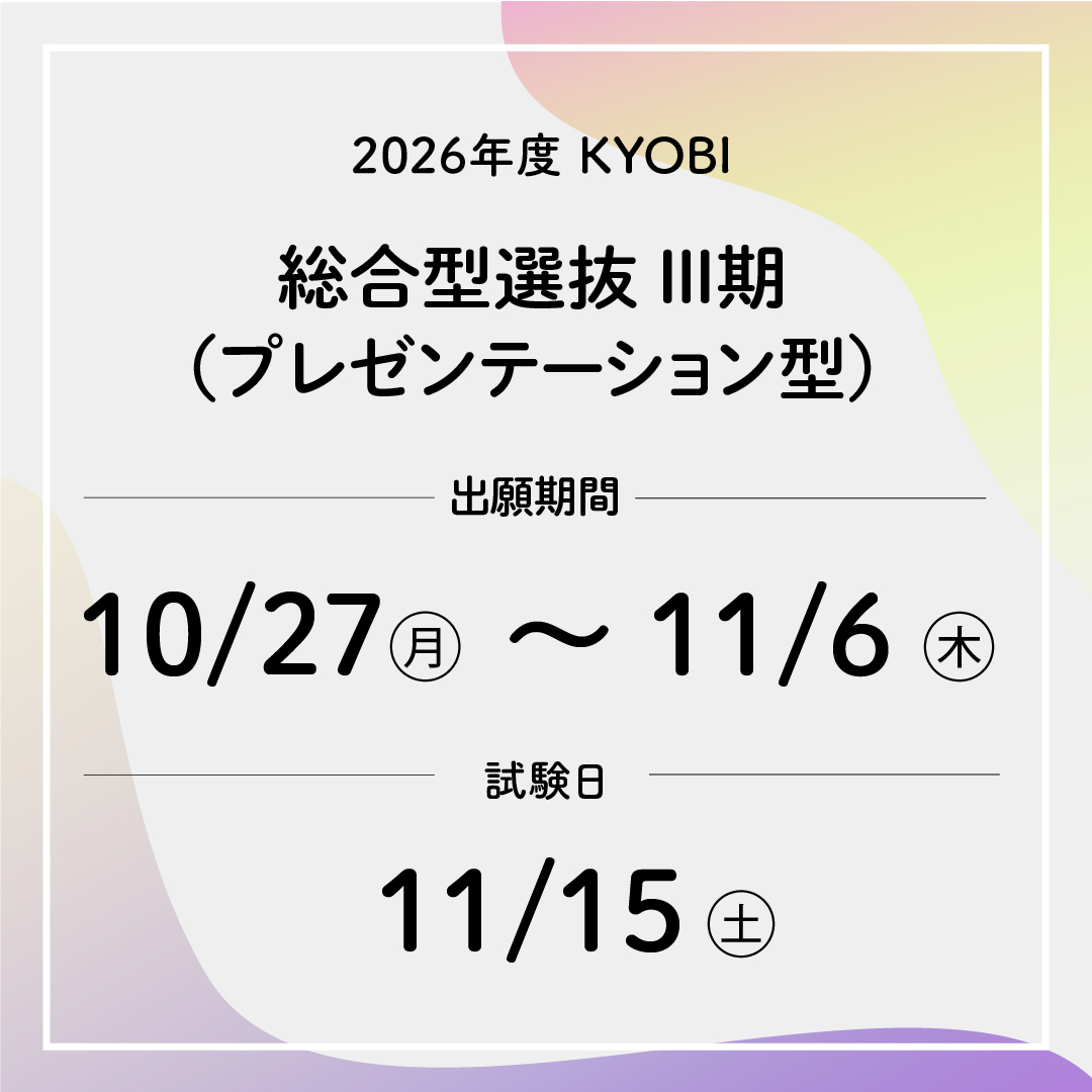 総合型Ⅲ期(プレゼンテーション型)、公募推薦、専門学科・総合学科特別推薦の出願受付は明日11/6(木)までです。 早期受験で年内合格を目指される方は今からでも間に合います! 詳細▶kyobi.ac.jp/examination/ad… #総合型選抜 #プレゼンテーション #公募推薦 #専門学科 #総合学科 pic.x.com/8Dn1oqRVFr