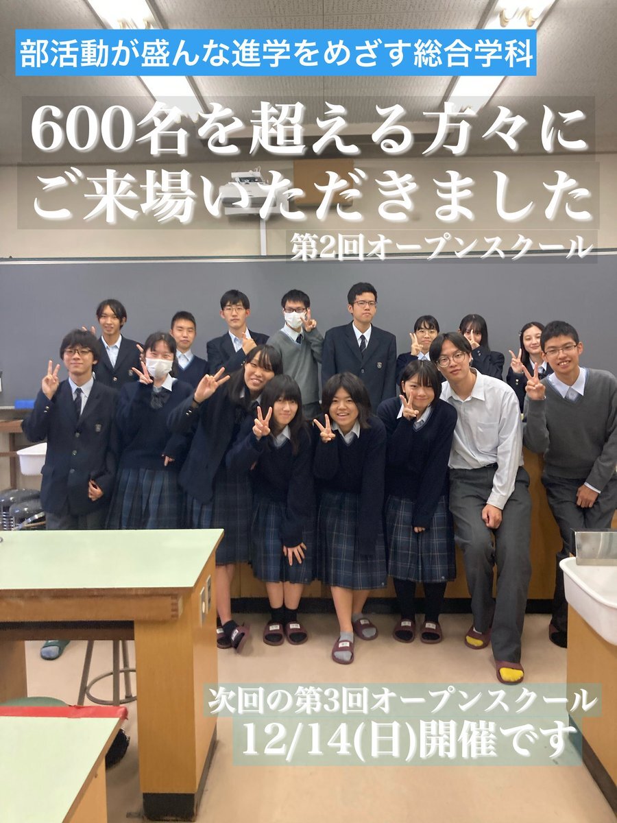 10/26(日)に第2回オープンスクールが行われました 今回は300件以上のお申し込みをいただき、600名を超える中学生、保護者の方々にご来校いただきました オープンスクールに参加していただいた中学生、保護者の皆さまに改めて御礼を申し上げます ありがとうございました #枚方なぎさ #総合学科 pic.x.com/uY3QcpYt46