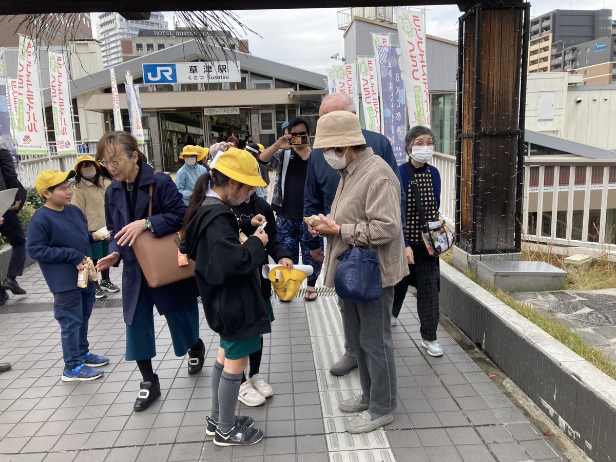 今日の午後、笠縫小学校5年生の皆さんが #JR草津駅前 でお手伝い。#s滋賀県稲作経営者会議 の皆さんのサポートもいただいて #新米 を配りました。 #総合的な学習の時間 でお米について学び、手作りのリーフレットで道行く人に滋賀のおいしいお米をPR。 #イブロケ785 でご紹介。再放送は22時から。 pic.x.com/f9IZtGs2Wh