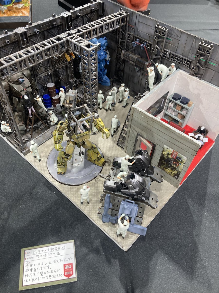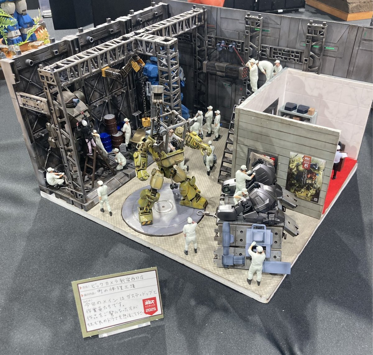本日より北千住マルイにて開催の #装甲騎兵ボトムズ 総合模型演習2025にビックカメラ新宿西口店が参加しております。 昨年に引き続き参加のジオラマ展示。今年は『町の修理工場』がテーマです。 是非会場でご覧ください。 #総模演