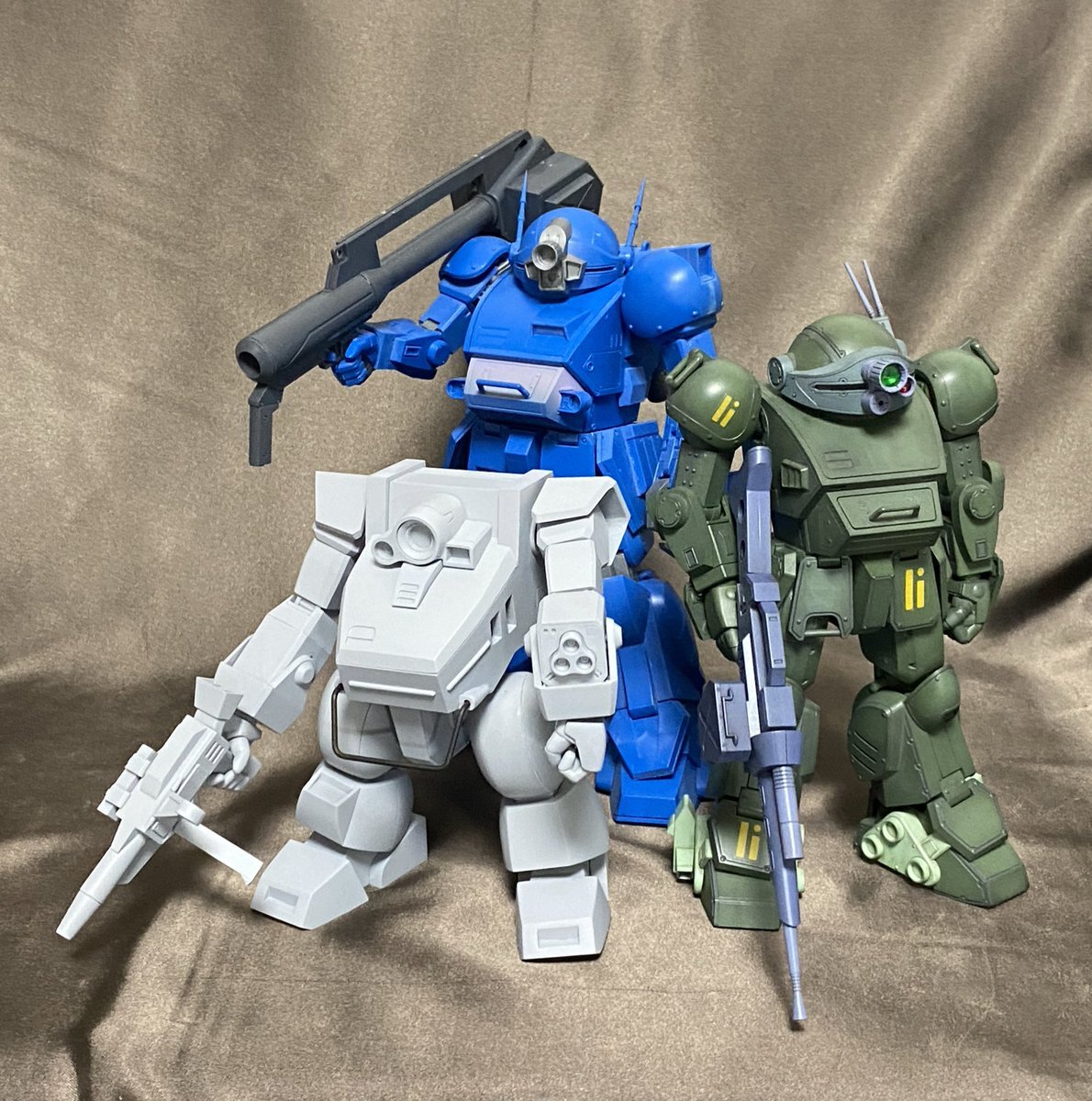 1/24ツヴァーク(総合模型演習2025) 関節は任意の角度で固定するフリーポーズ仕様ですが市販のボールジョイントを組み込むことも出来ます。 3階級並べるとこんな感じです。 #総模演 #ボトムズ pic.x.com/sAOGRteGSC