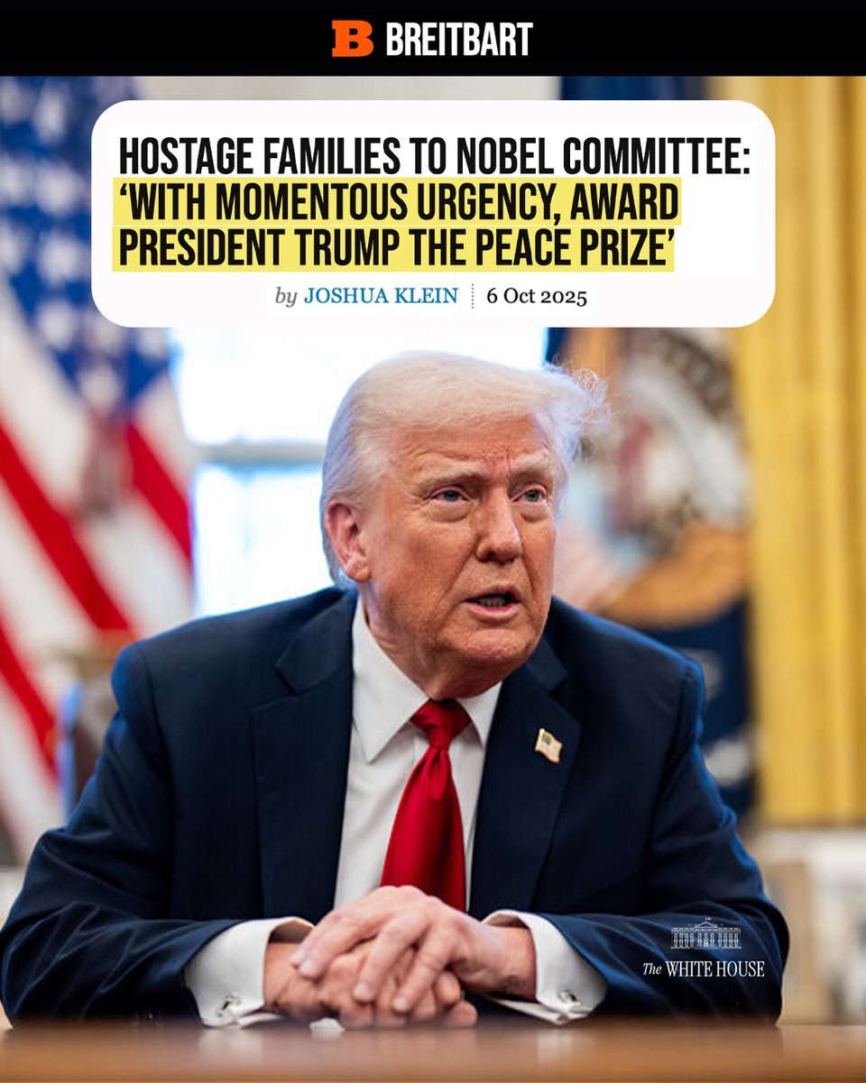 THE PEACE PRESIDENT 📰 @BreitbartNews, Hostage Families to Nobel Committee: ‘With Momentous Urgency, Award President Trump the Peace Prize’