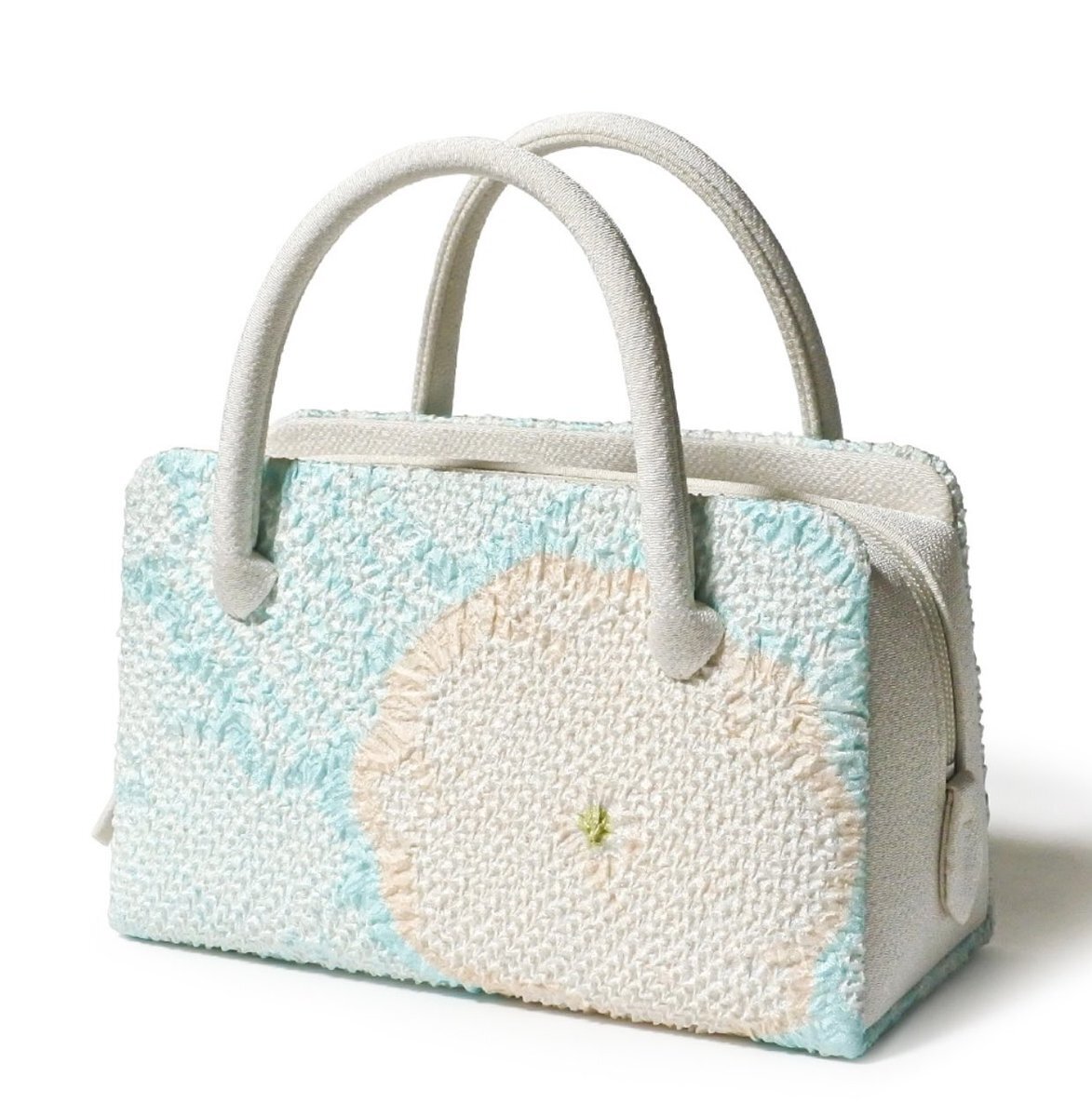 葵バッグ 「総絞 薄紅花」水色 地紋入りの鮮やかな水色に、疋田を施した白や薄いサーモンピンクの花型の絞りを大胆に配した和装バッグです。 おしゃれ着や小紋のほか、観劇やお食事、パーティーにお持ちいただいても華やかです。 #井澤屋 #着物 #葵バッグ #和装バッグ #利休バッグ #バッグ #総絞り pic.x.com/6wIMHIGbQ3